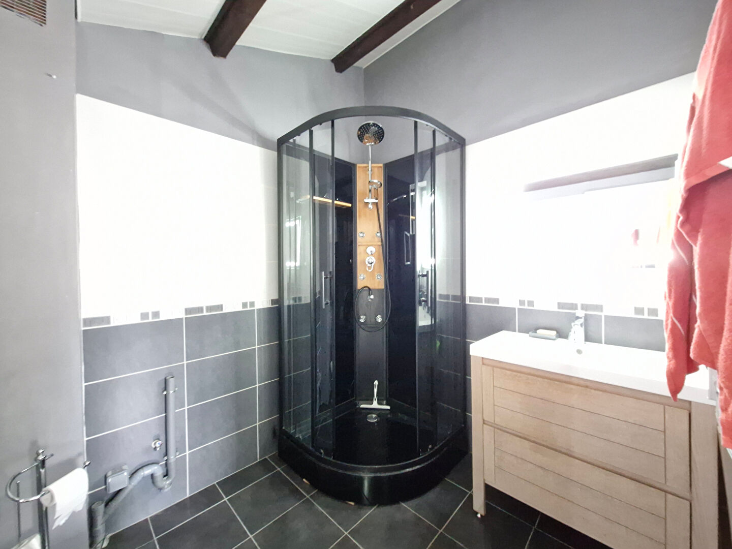 Vous profiterez d'une cuisine équipée ouverte sur un séjour d'environ 40m² équipé d'un poèle à granules, une salle d'eau...