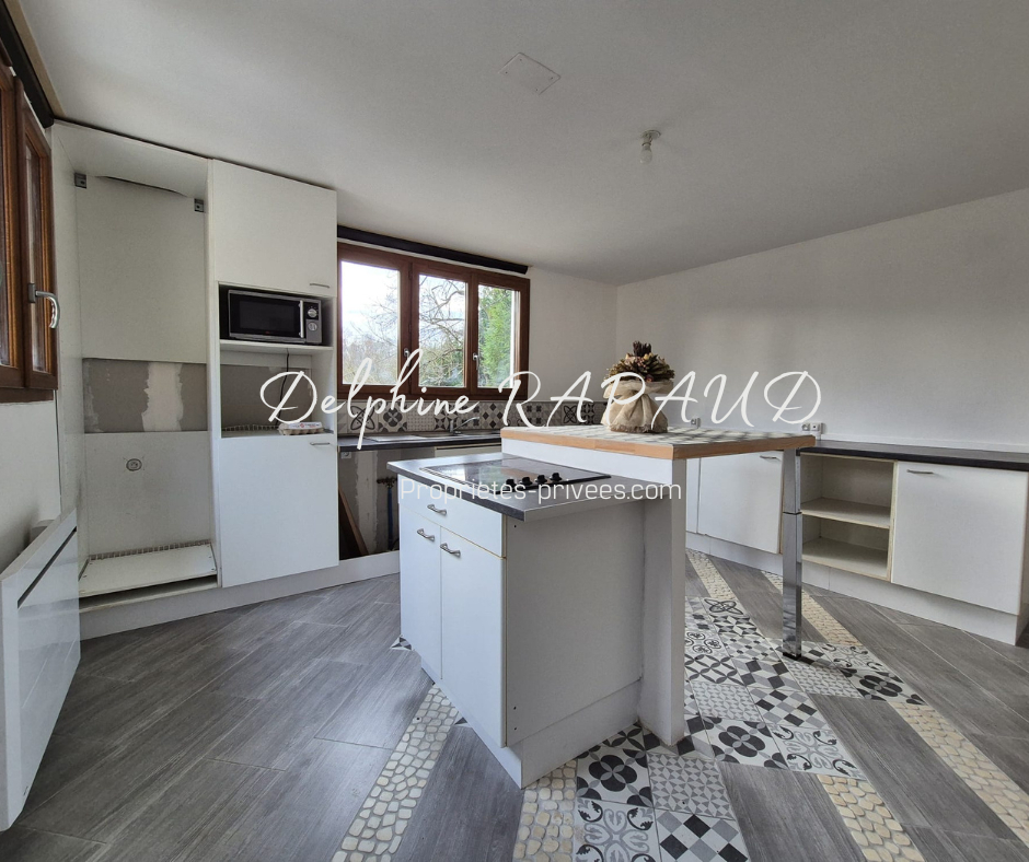 Vous y découvrirez au rez-de-chaussée une cuisine équipée, agrémentée d'un poêle à bois récent, parfaite pour vos soirées.