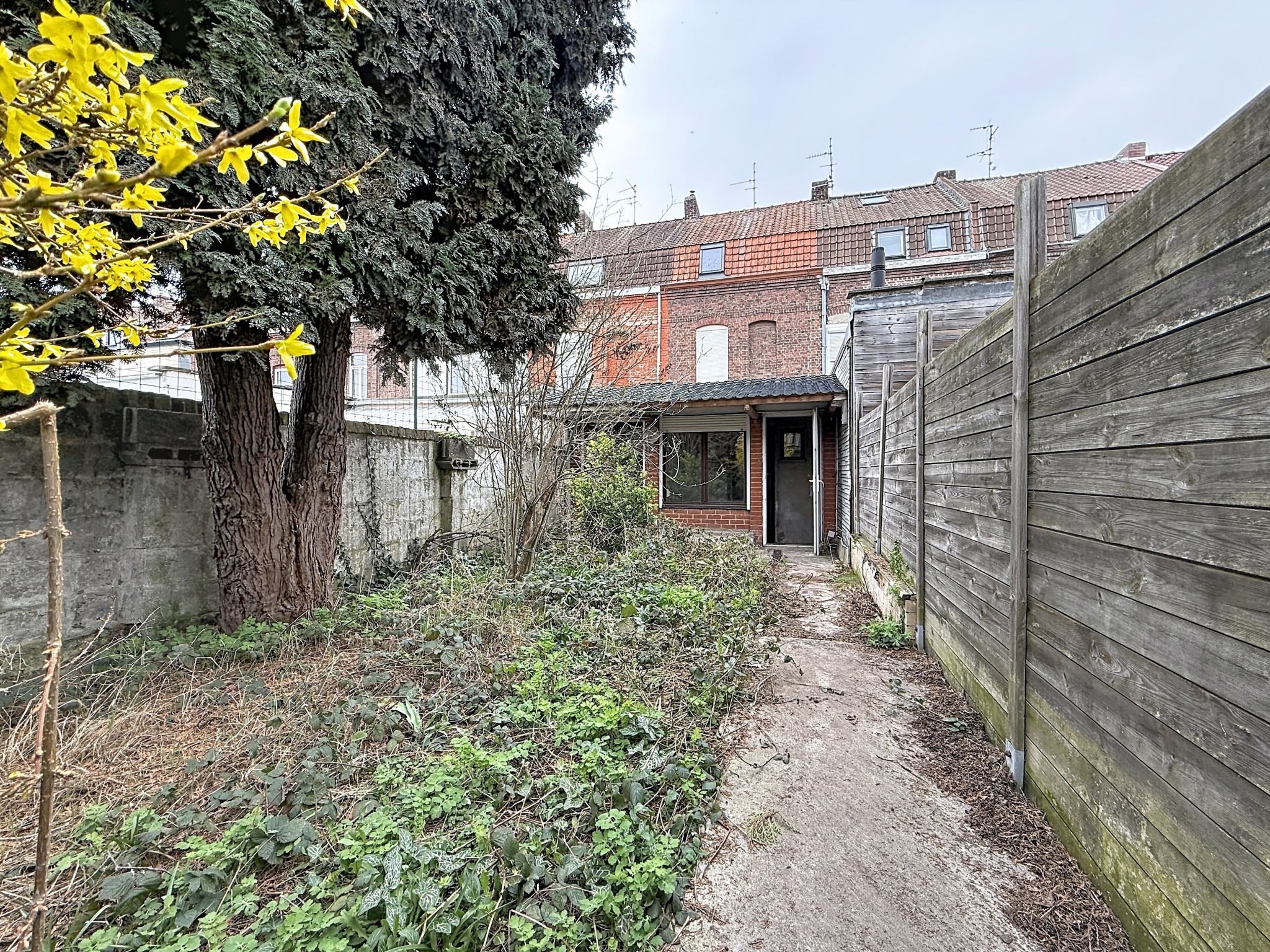 Maison semi individuelle avec passage latéral, située sur une parcelle d'environ 307 m², offrant de beaux volumes et un extérieur soigné.