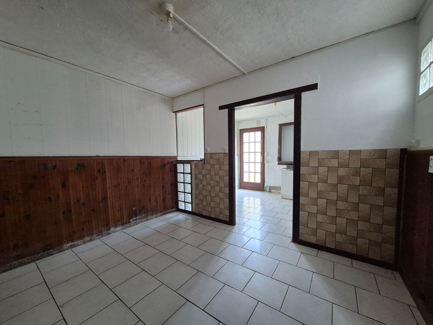 Gros potentiel : séjour avec cuisine ouverte, salle d'eau.