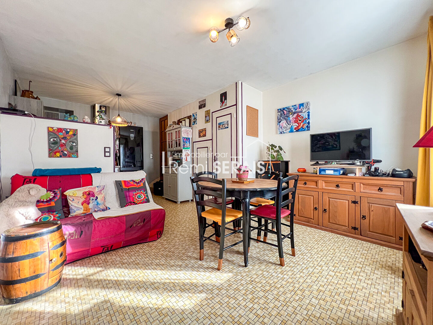 Vaste entrée, séjour, cuisine, sdb, wc.