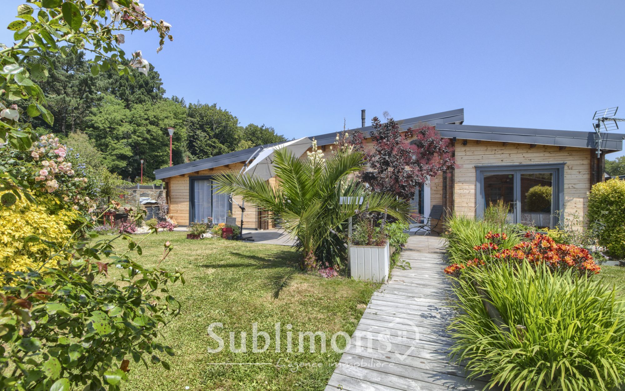 Dans un quartier ancien, sur un terrain rare, au calme et idéalement exposé de 1 850m2... avec une vue sur la RIA, maison de 91m2 habitables totalement de plain-pied.