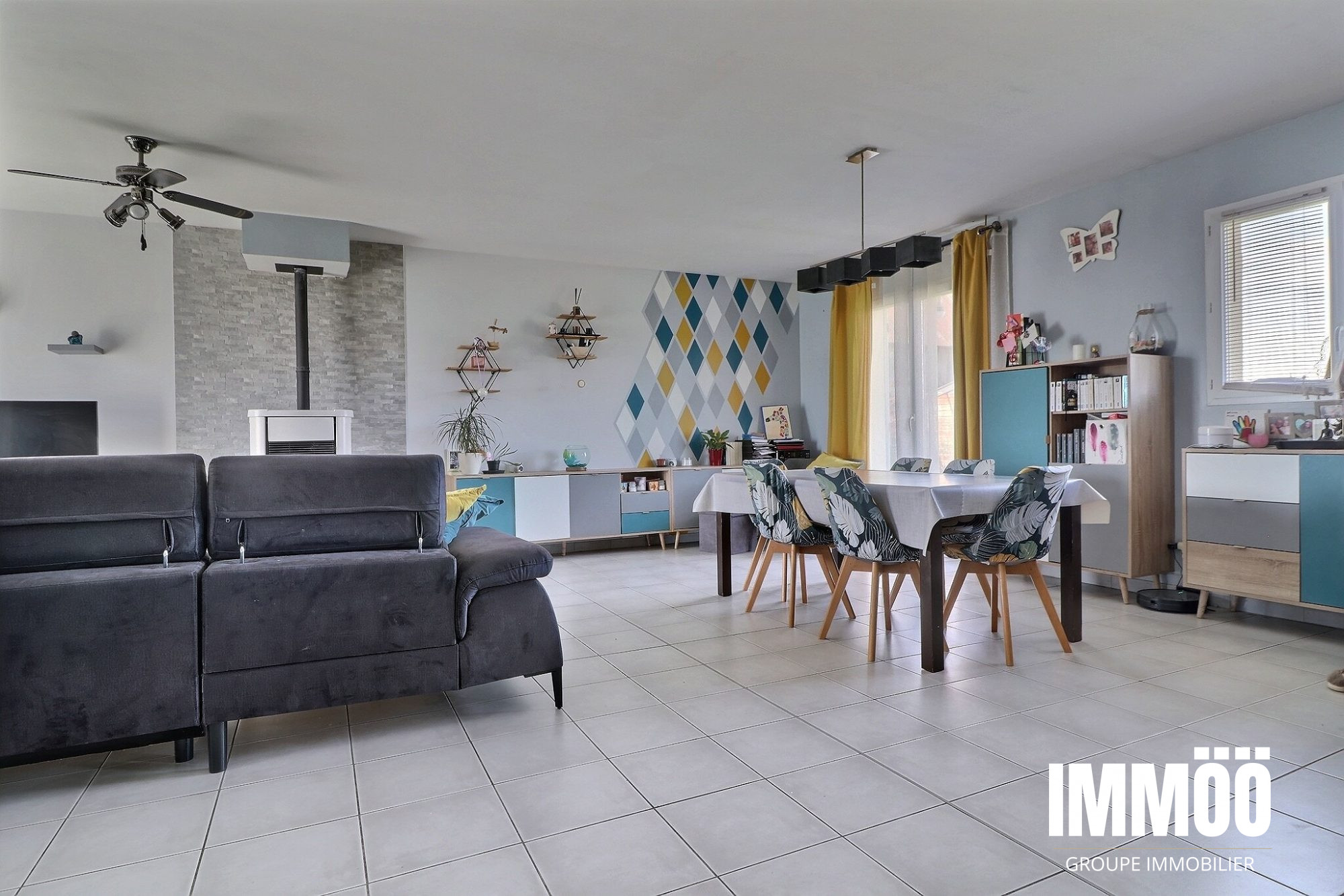 Au rez-de-chaussée, vous trouverez un espace de vie lumineux comprenant un salon salle à manger avec poêle à pellets...