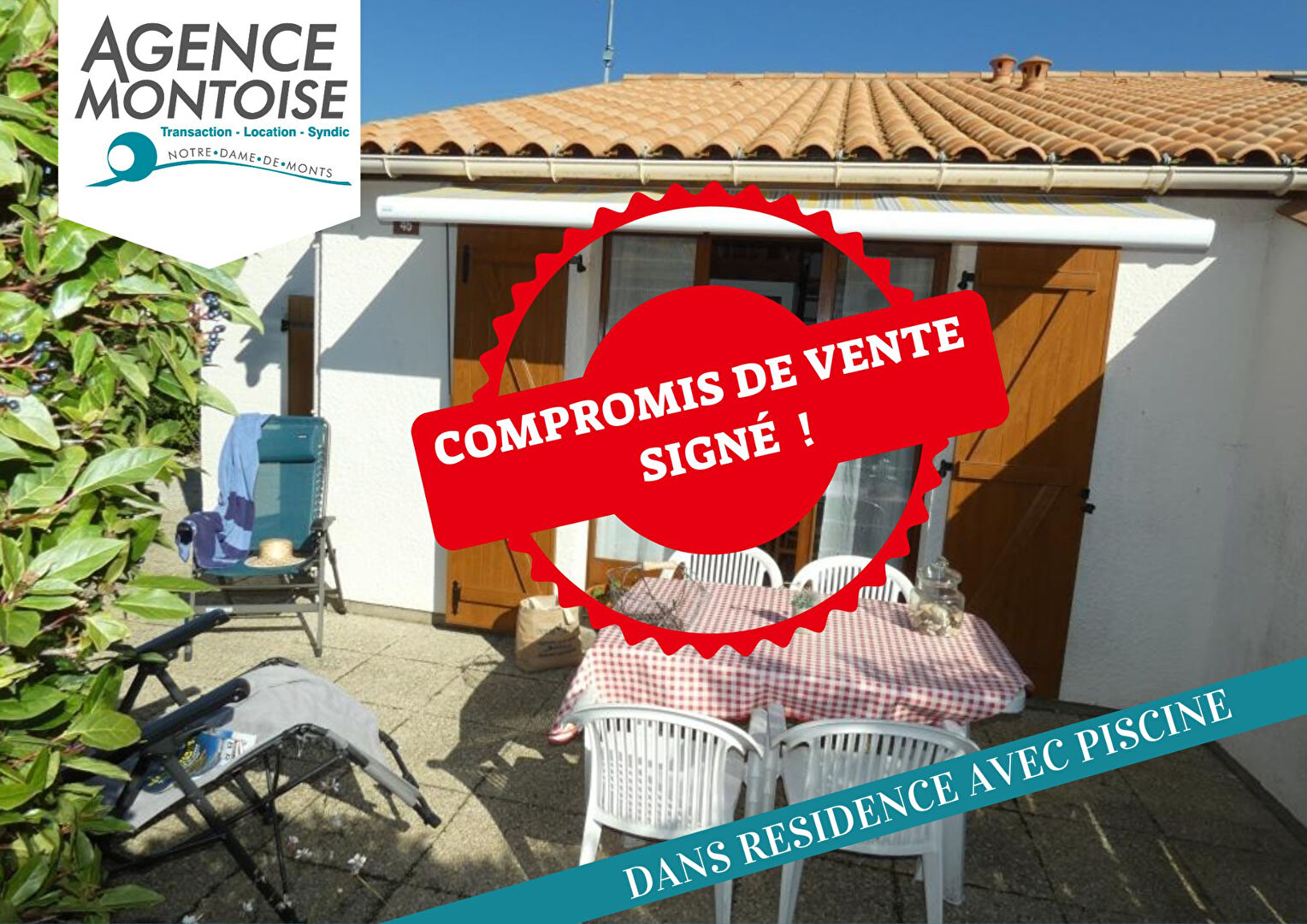 Au coeur de Notre Dame de Monts, Maison récente dans une résidence de qualité avec piscine chauffée. Ce bien de type 3 allie confort et élégance. il se compose d'une entrée, Salon/ Séjour, cuisine aménagée et équipée, 1 chambre, salle d'eau avec douc...