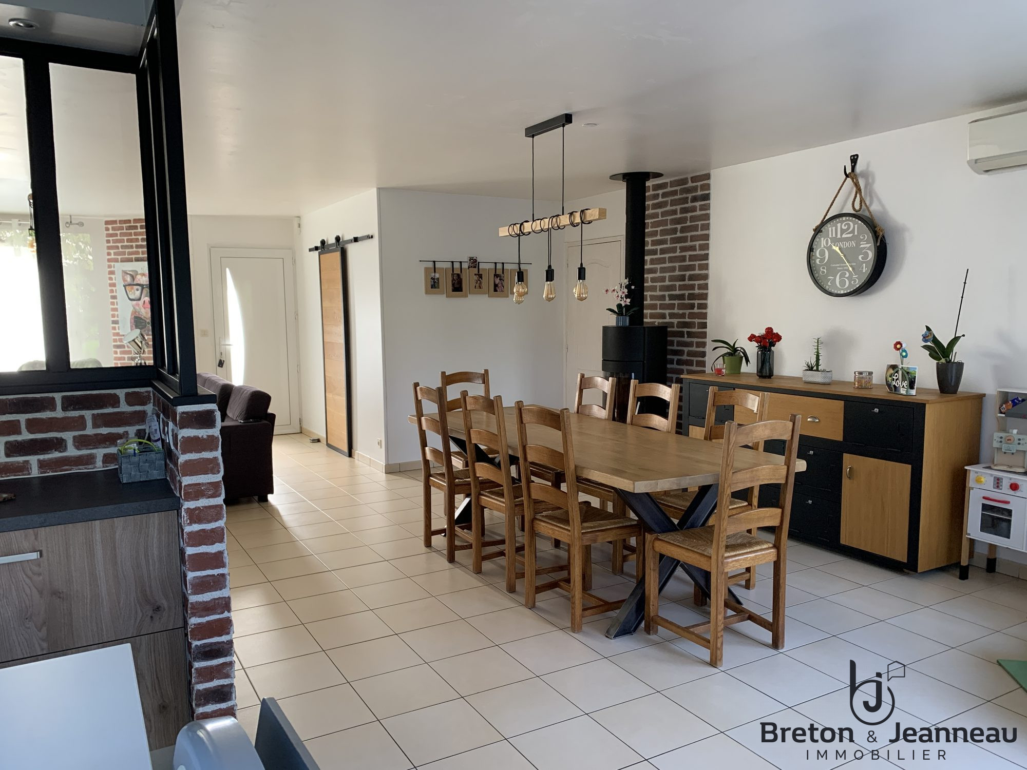 PAVILLON d'environ 177m2 habitables, offrant : entrée sur pièce à vivre avec poêle à bois, cuisine ouverte aménagée et équipée (four, plaque, hotte, lave-vaisselle, réfrigérateur) donnant sur terrasse, deux chambres dont u...