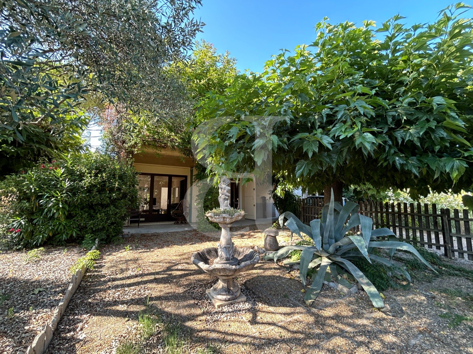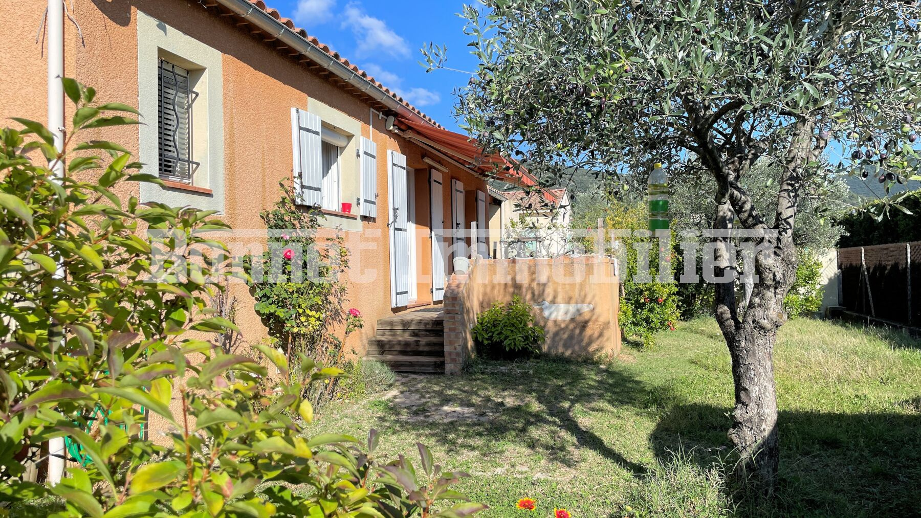 Dans un quartier résidentiel proche des commodités, villa de plain-pied fonctionnelle et lumineuse sur terrain clos et arboré de 830 m2 avec quelques fruitiers (cerisier, olivier, figuier, abricotier), et abri de jardin.