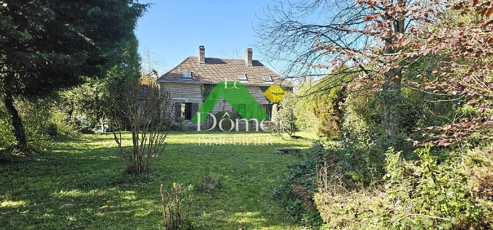 Entre Gournay en Bray et Gisors, Cette maison ancienne de 161 m2 comprend une entrée sur un vaste séjour double agrémenté de 2 cheminées, la cuisine est aménagée, couloir, salle de bains, wc séparé, une grande cage d'escalier vous amène à l 'étage s...