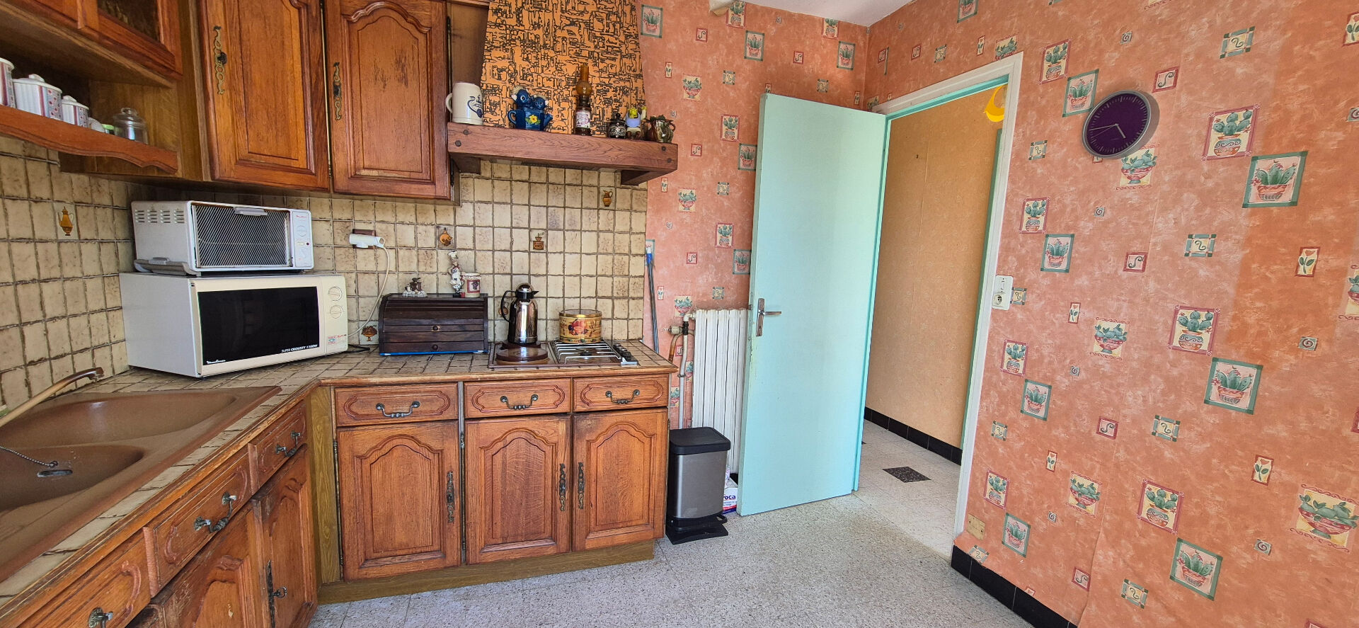 Ce pavillon sur sous-sol total dispose d'une entrée, un séjour lumineux avec cheminée insert, une cuisine aménagée et équipée, une salle de bains, un wc.
