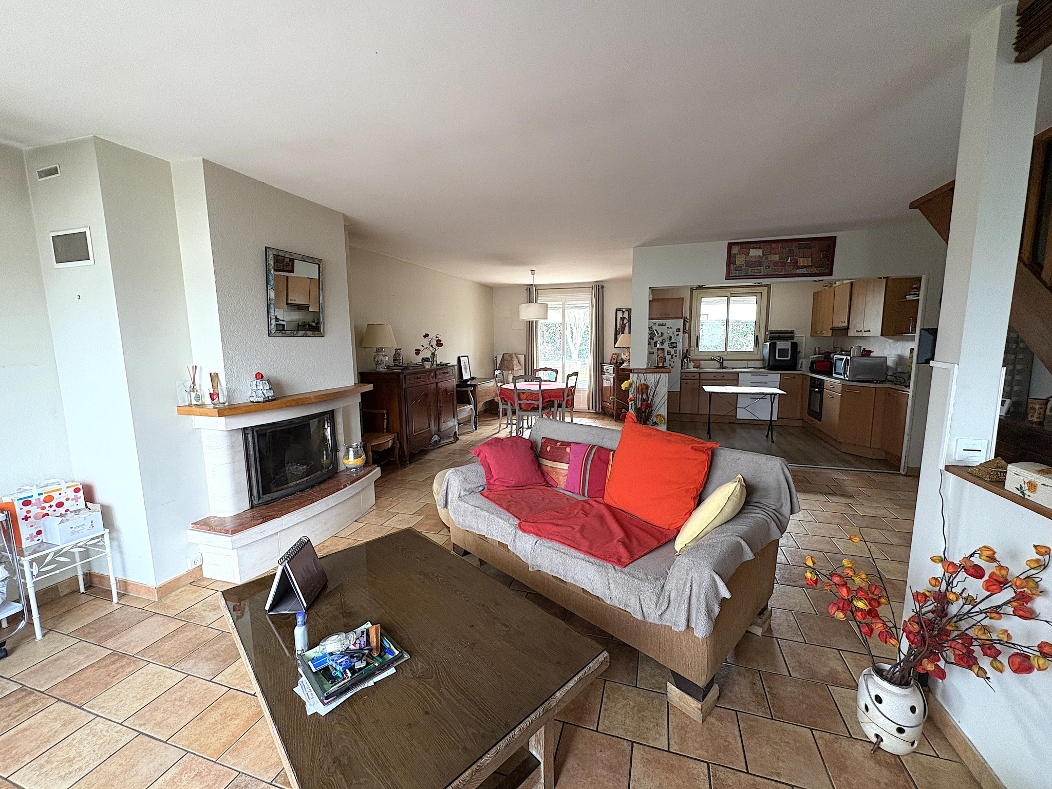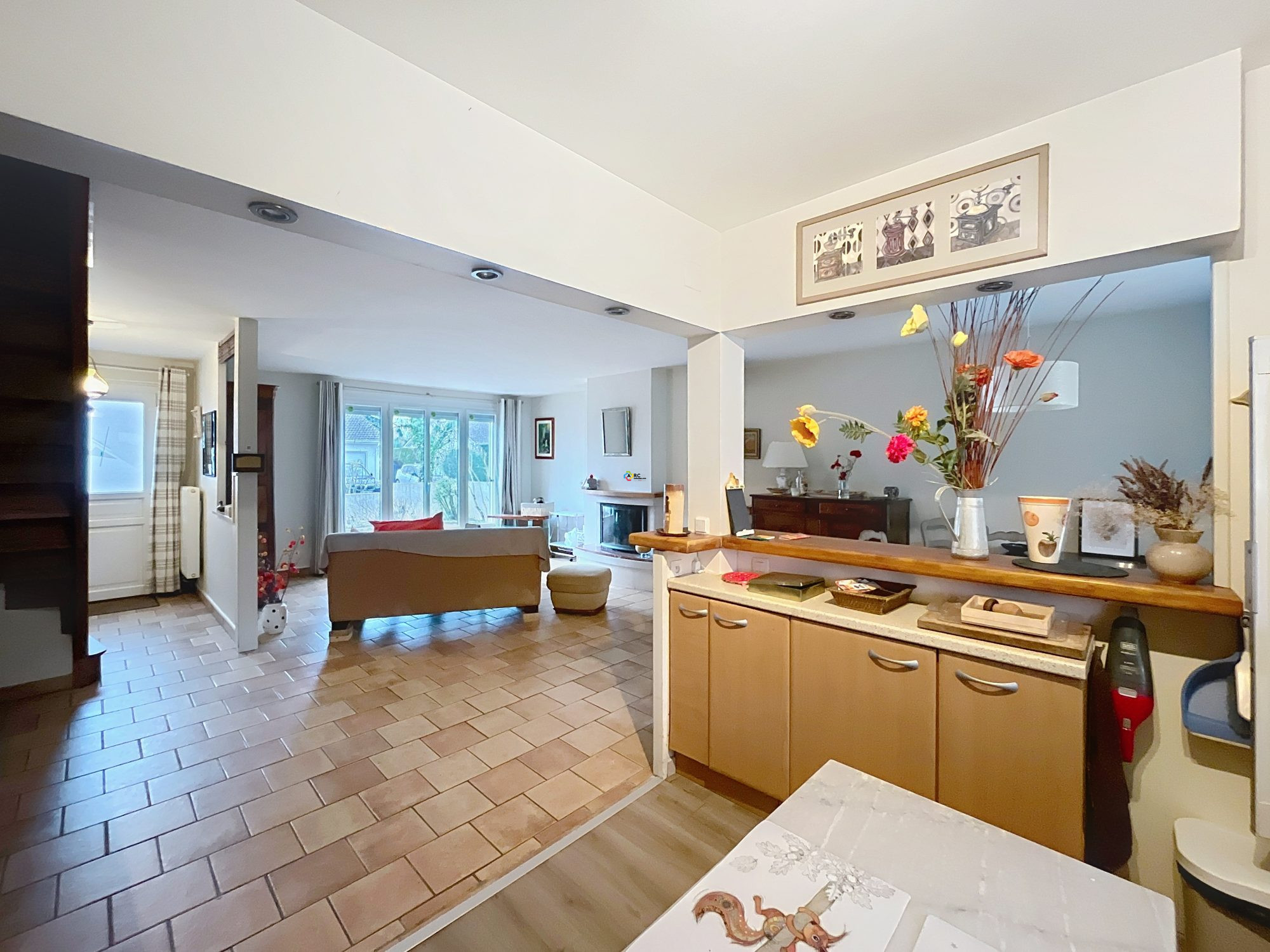 - AU RDC : BELLE ENTRÉE OFFRANT UNE VUE TRAVERSANTE ET DESSERVANT UN ESPACE SÉJOUR-SALLE A MANGER-CUISINE ET UN SALON AVEC UNE CHEMINÉE