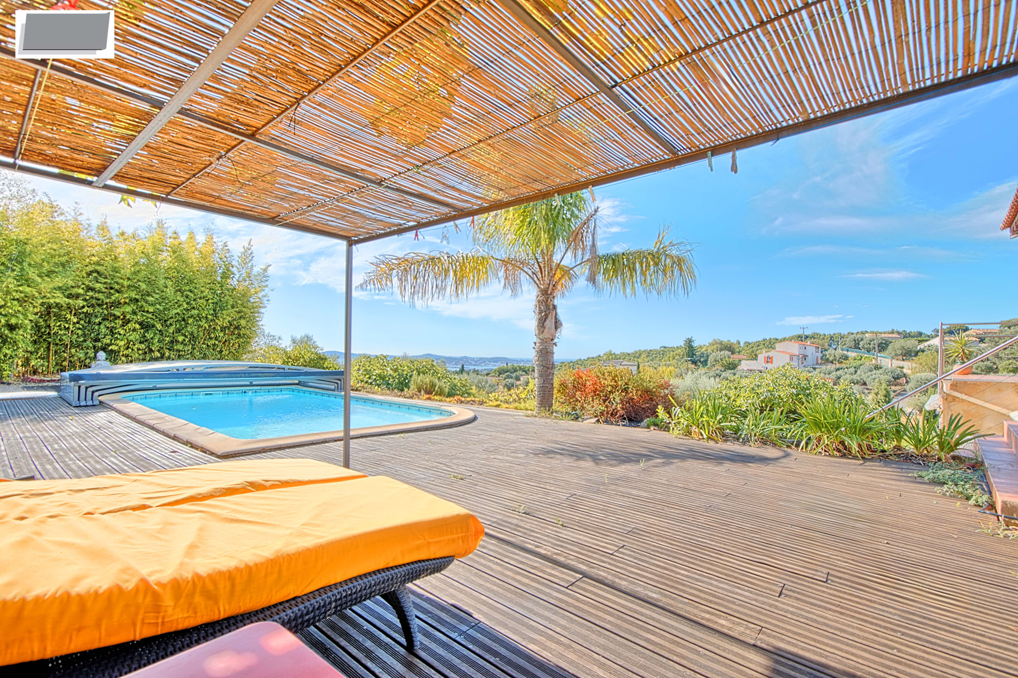 Cette villa d'env 122 m² bénéficie d'un panorama exceptionnel et s'élève fièrement depuis les hauteurs du village avec vue sur la Méditerranée.