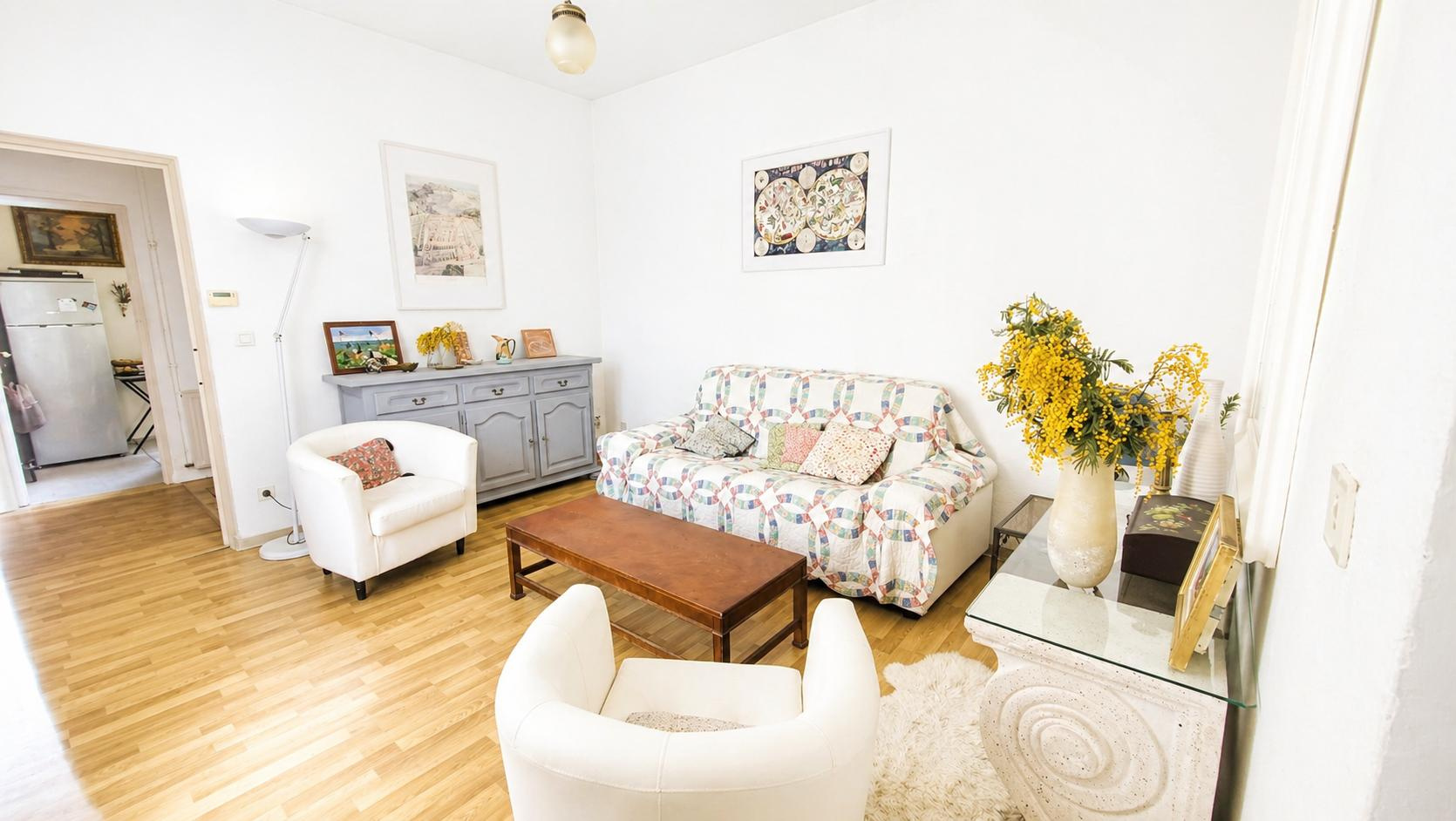Salon et séjour lumineux avec cuisine à aménager 42m2, 3 chamb...