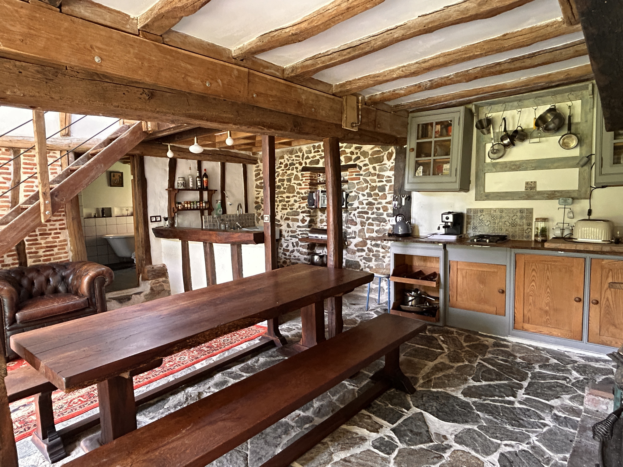Au rez-de-chaussée vous retrouverez un séjour avec coin cuisine, une salle d'eau avec toilettes sèches, une buanderie.