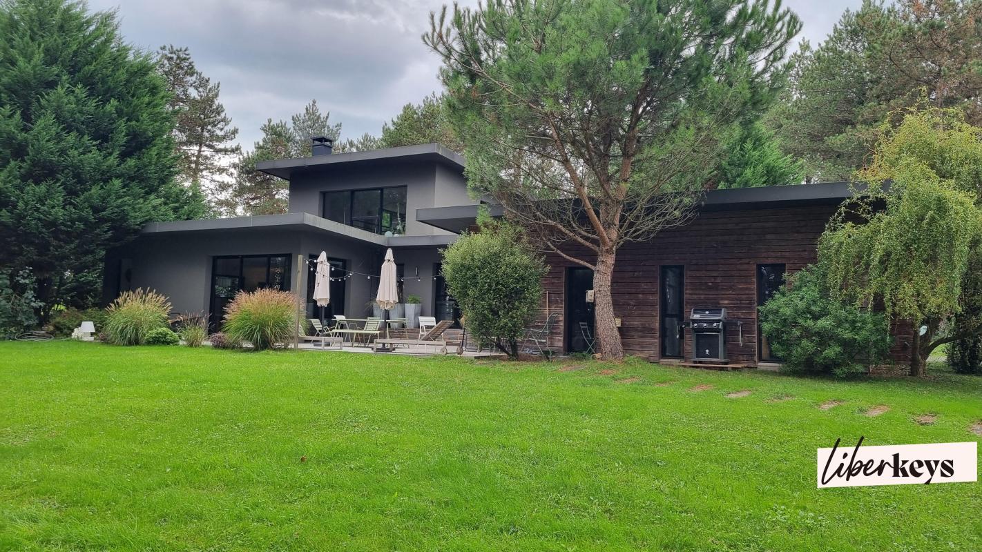 LIBERKEYS vous propose, en EXCLUSIVITÉ à OUDON, cette remarquable maison d'architecte de 220 m² + 50 m², alliant confort, volumes généreux et prestations de qualité, nichée sur un domaine d'exception de près de 3 hectares.
