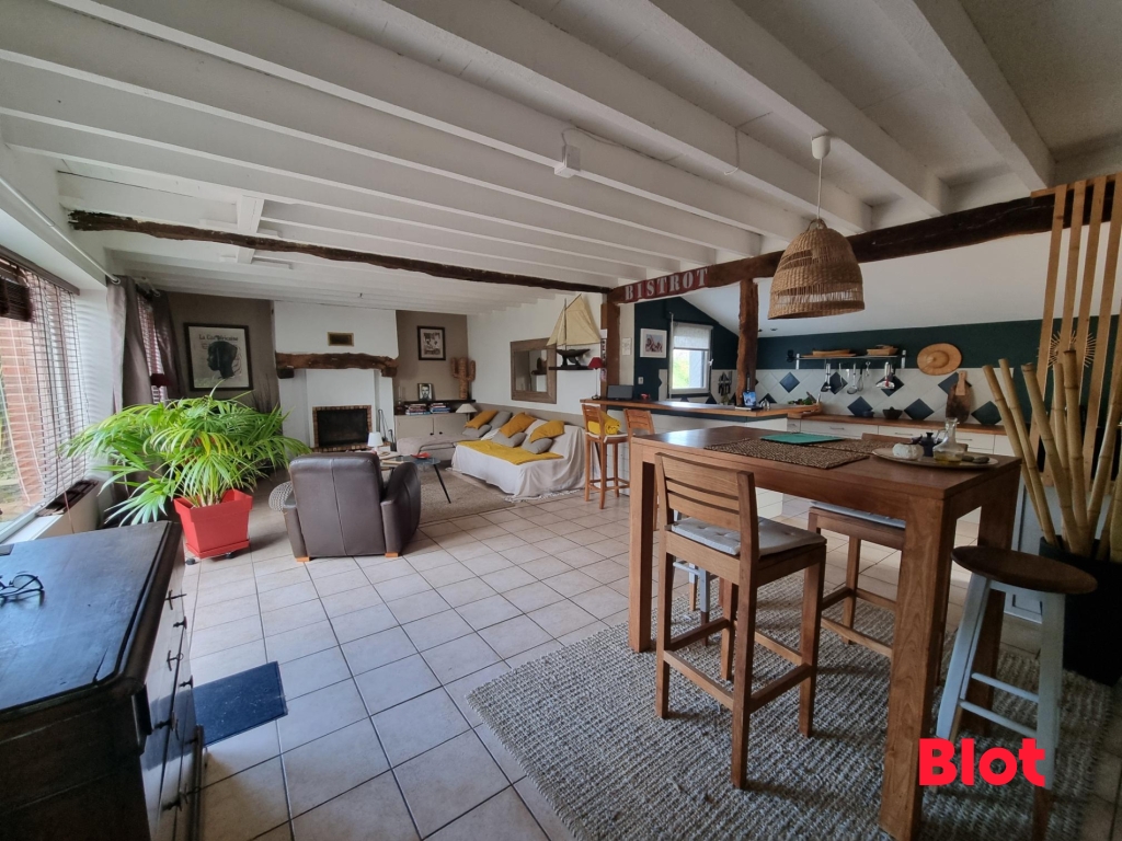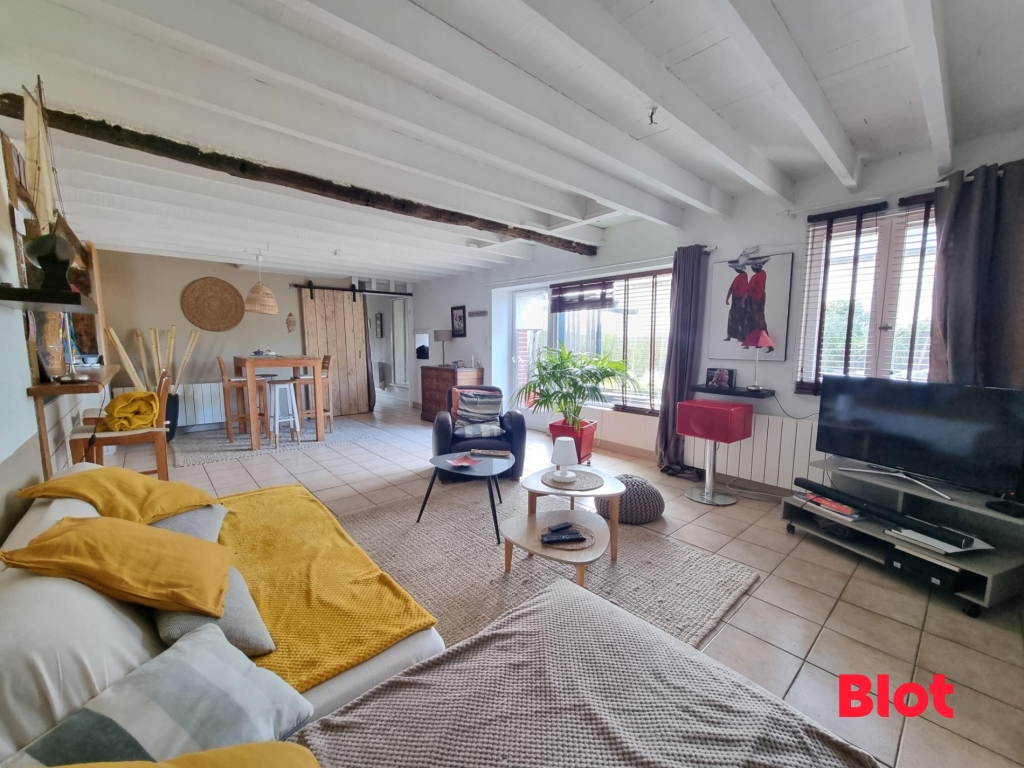 Rare sur le marché, cette bâtisse en torchis se compose d'un bâtiment principal de 81 m² au sol, d'une annexe (anciennes soues) sur un coté de 21m² et d&...