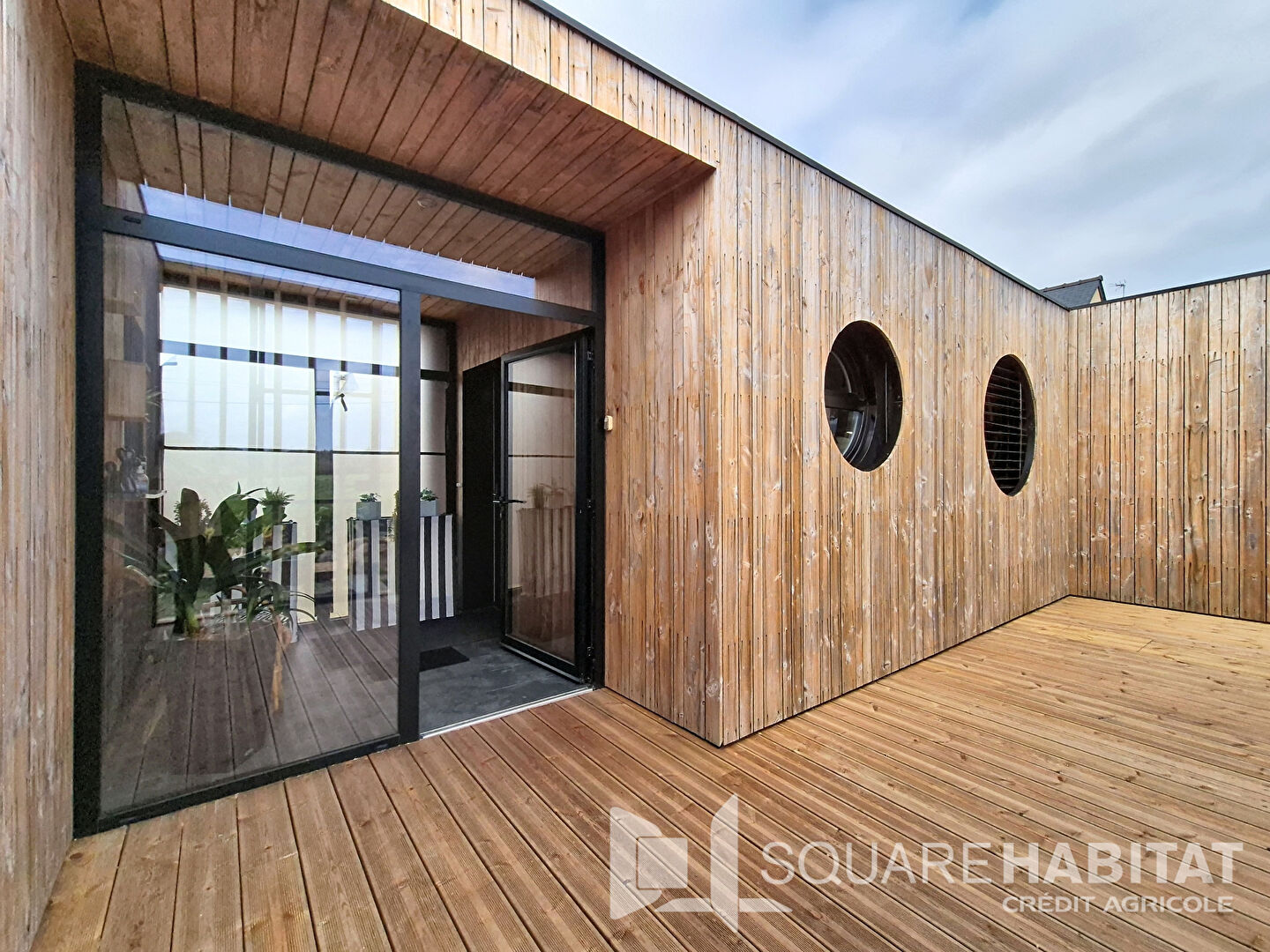Uniquement chez square habitat, à PAIMPOL (22500) proximité bourg de PLOUNEZ, maison d'architecte de plain-pied au design contemporain construite en 2012 sur un terrain de 647 m2. Cette maison très lumineuse est atypique par son ossature réalisée en conta...