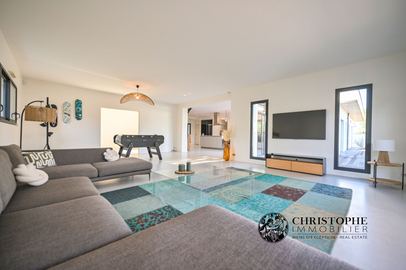 Cette maison contemporaine de 240 m2, baignée de lumière, bénéficie d'un exceptionnel terrain paysagé de 2000 m2. De larges terrasses offres plusieurs espaces de repos o...