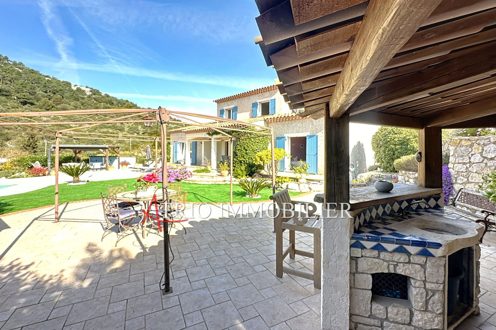 Produit exclusif, à seulement 20 min de Monaco, dans un secteur résidentiel proche de Saint Martin de Peille, Magnifique provençale de belle facture sur un terrain dominant offrant une vue panoramique, beaux espaces extérieurs, belle cuisine d'été avec fo...