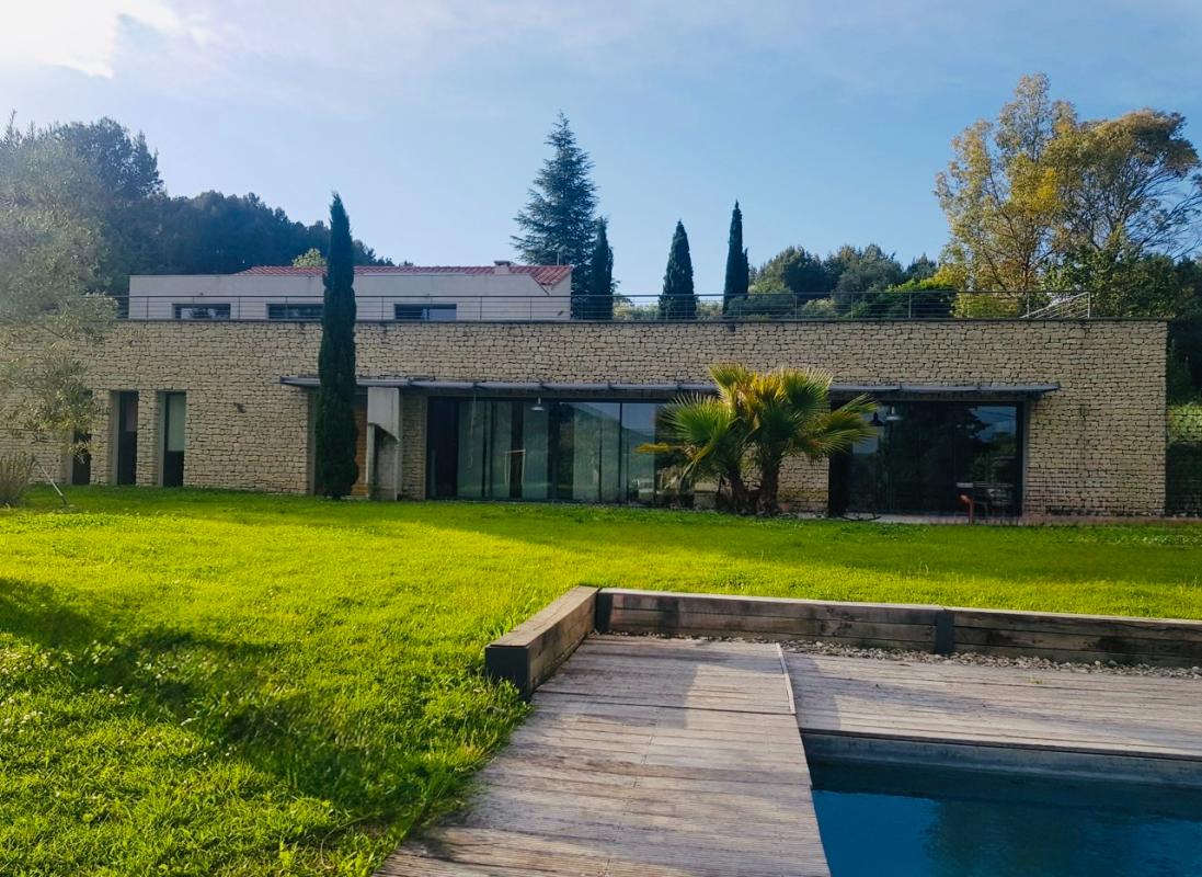 Vue magique pour cette villa contemporaine proche du centre du village. 242 M² sur environ 3500m² de terrain avec piscine ( possibilité d'acquérir plus de terrain d'environ 300...