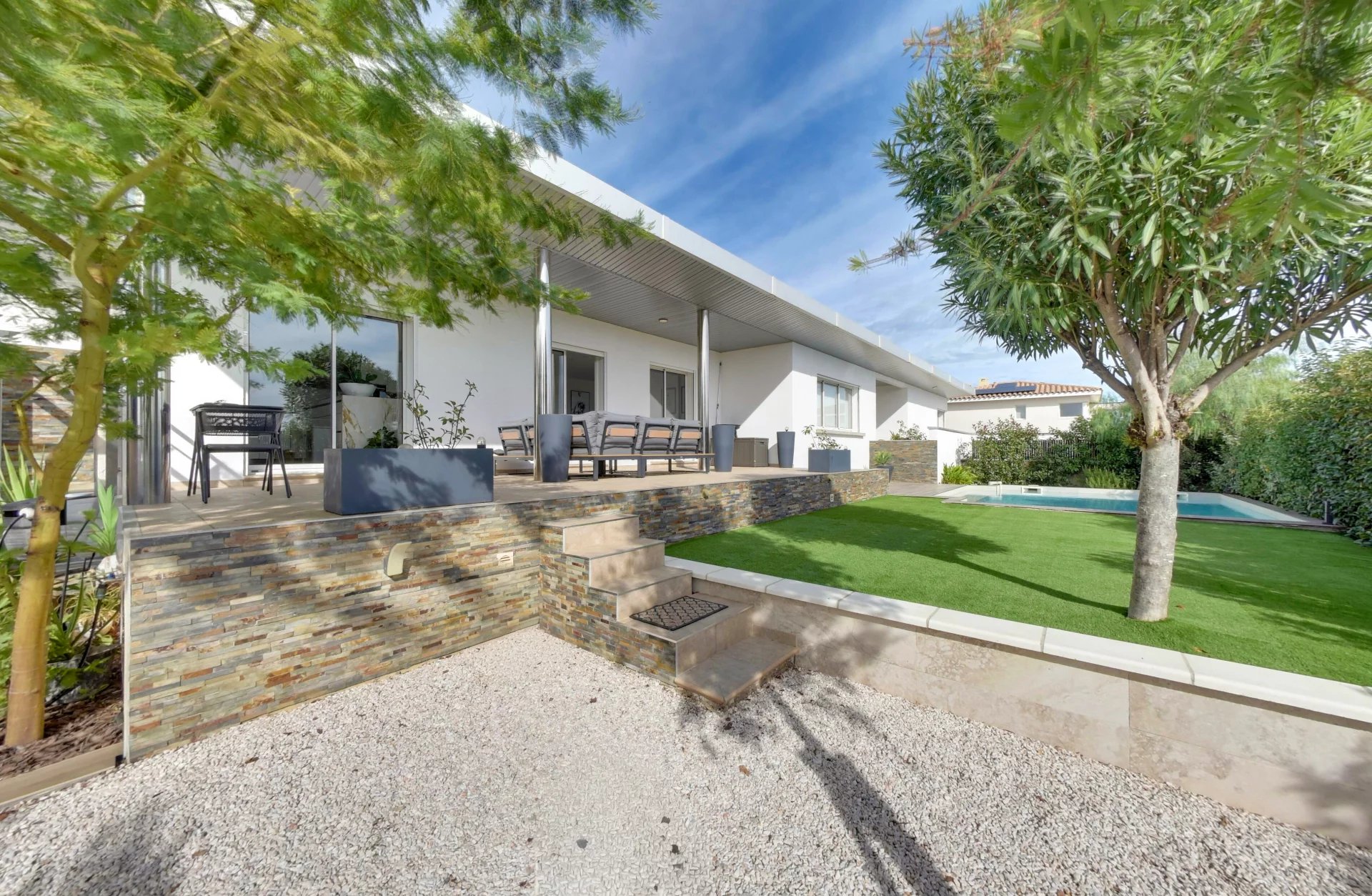 En exclusivité chez Coldwell Banker Must Immobilier, cette villa de plain-pied, entièrement rénovée en 2021, conjugue avec justesse modernité, confort et raffinement.