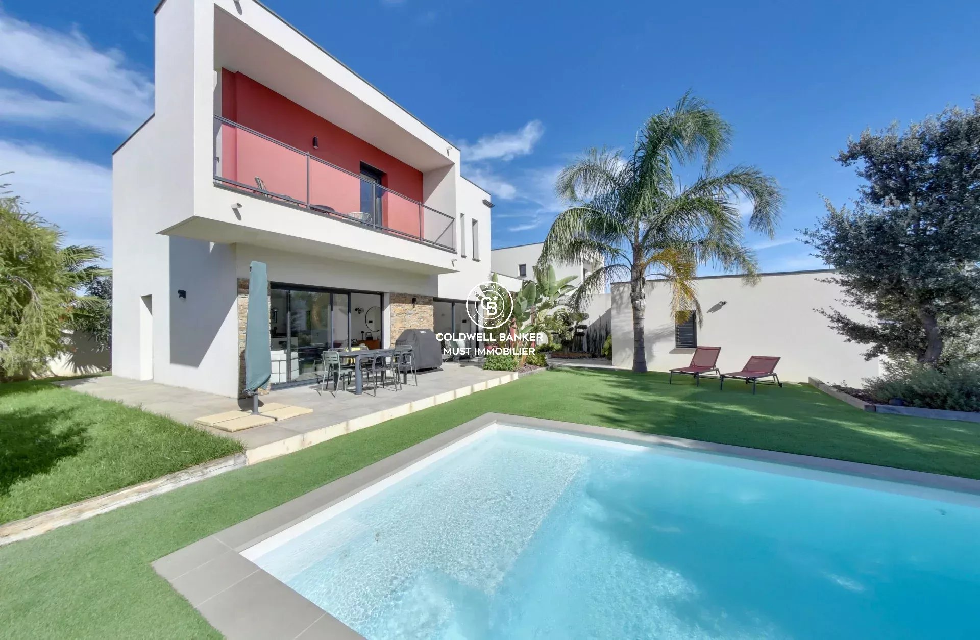 Située au fond d’une impasse dans le secteur sud de Perpignan, cette villa d’architecte de type 4 faces bénéficie d’un environnement paisible et privilégié. Implantée sur un terrain arboré de plus de 1 600 m², elle se distingue par la qualité de ses matériaux,...