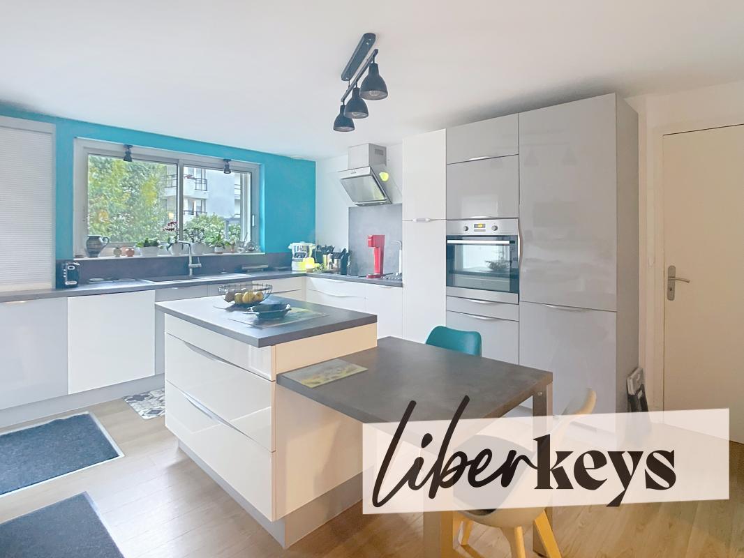 Au rez-de-chaussée, un salon-séjour lumineux, à triple exposition ouvre sur une cuisine a...