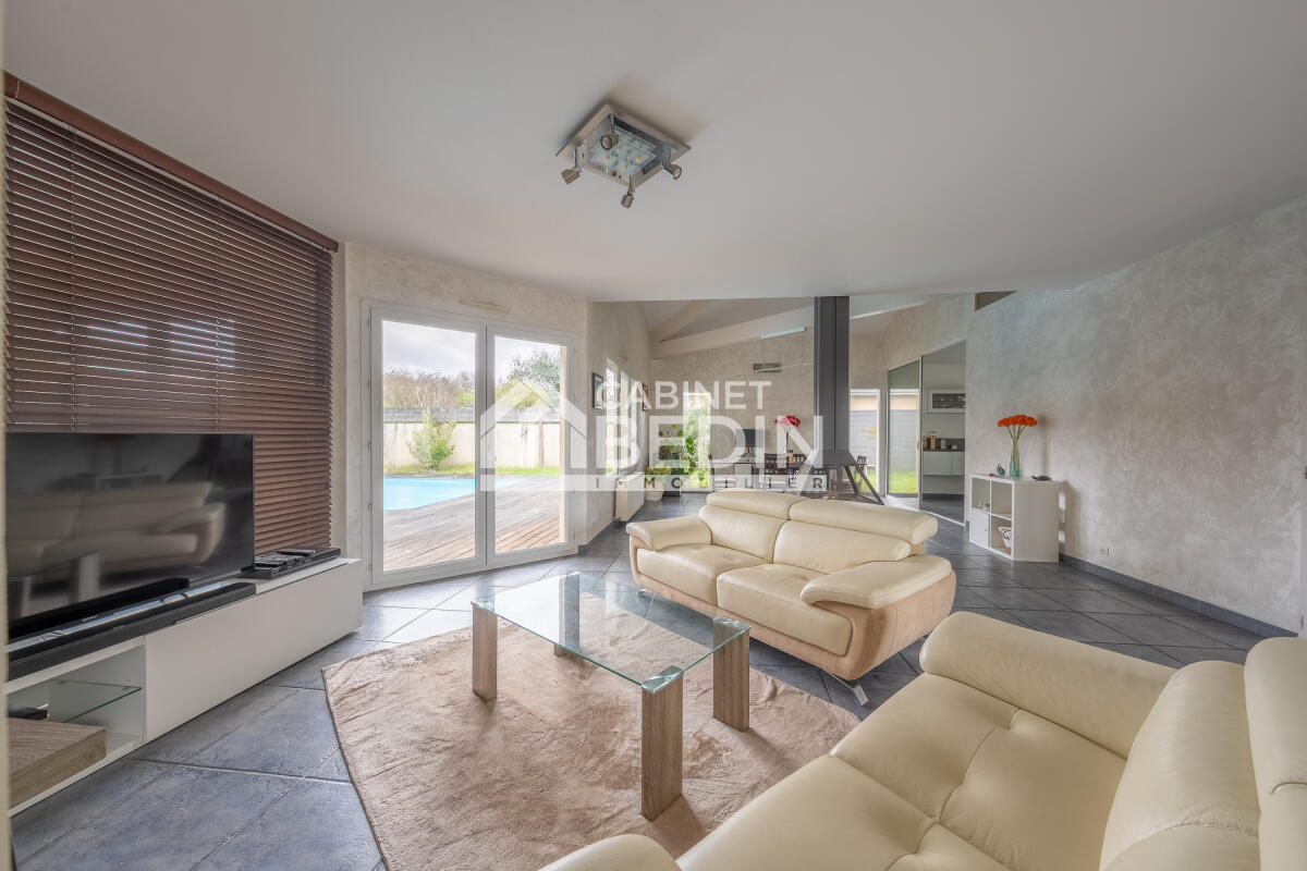 Belle maison d?architecte des années « 80 », de 229 m² habitables, sur sous-sol, dans un parc de 14 240 m², à 300 m des bus de Bordeaux-métropole et trois minutes, en vélo, des commerces. La propriété se situe en zone naturelle et séduira les amoureux de natu...