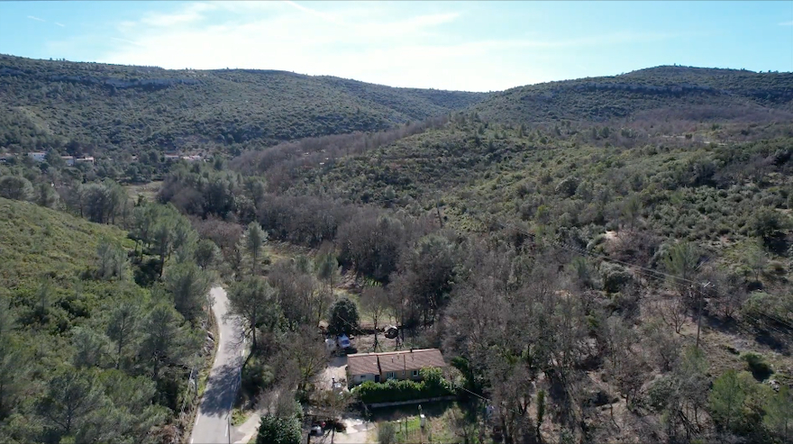 Maison de plain pied construite en 1980 sur un terrain boisé de 5000m² au coeur de la campagne peypinoise à 3kms du centre du village. Orientée plein sud sans aucun vis à vis elle est composée :