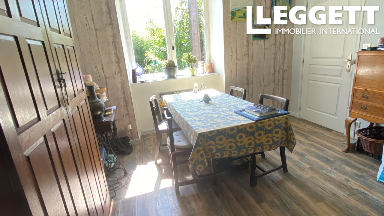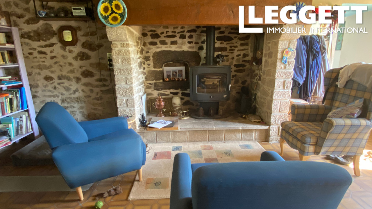 A37818JHC19 - Jolie fermette : entrée dans la pièce à vivre avec le cantou en pierre et poêle à bois, cuisine équipée à droite, salle à manger à gauche (pourrait être une chambre au rez-de-chaussée). Salle de bains (douche et lavabo) et toilettes séparées. A l...
