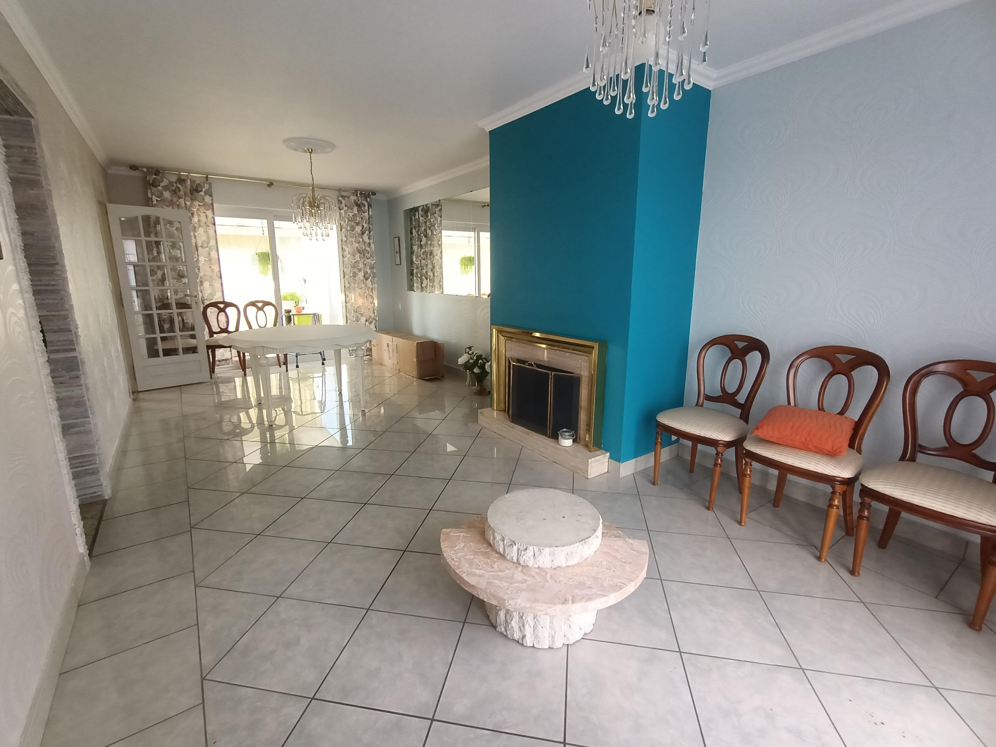 Belle pièce de vie lumineuse avec insert à pellets récent, grande cuisine équipée , véranda ouverte sur une magni...