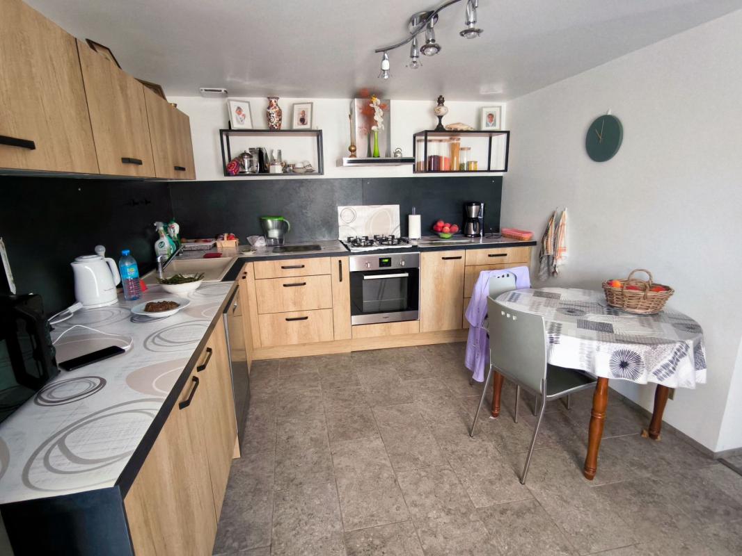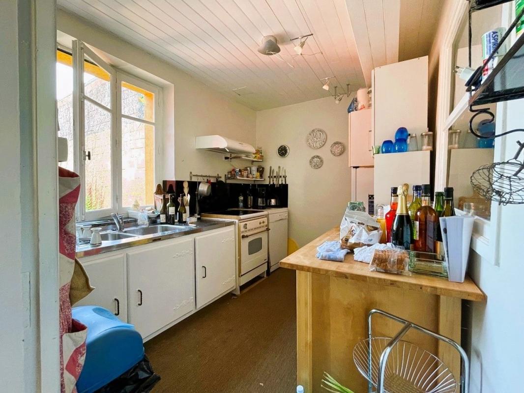 Maison entièrement rénovée comprenant, de plain-pied, un salon, une cuisine, une chambre, des WC séparés et une douche à l'italienne. À l'étage, une seconde chambre complète l'espace nuit.