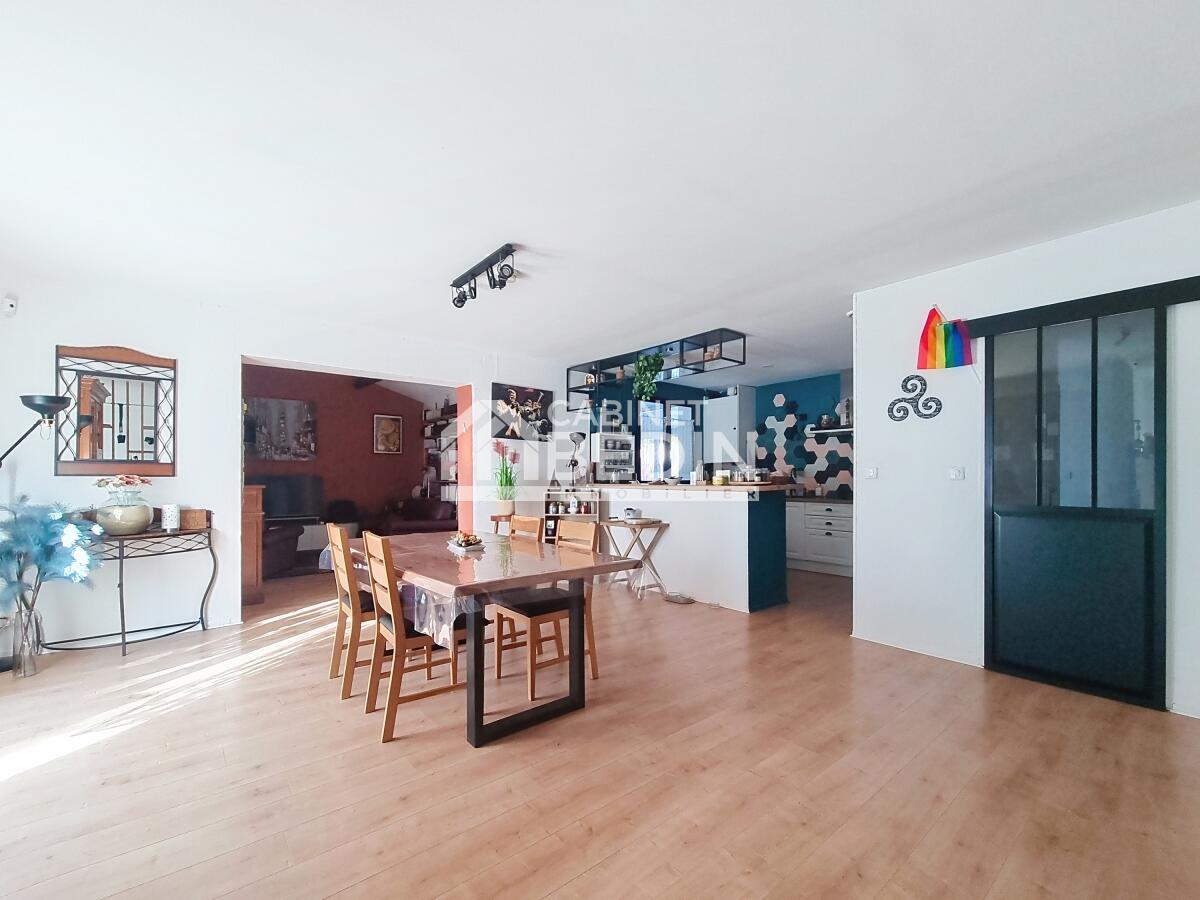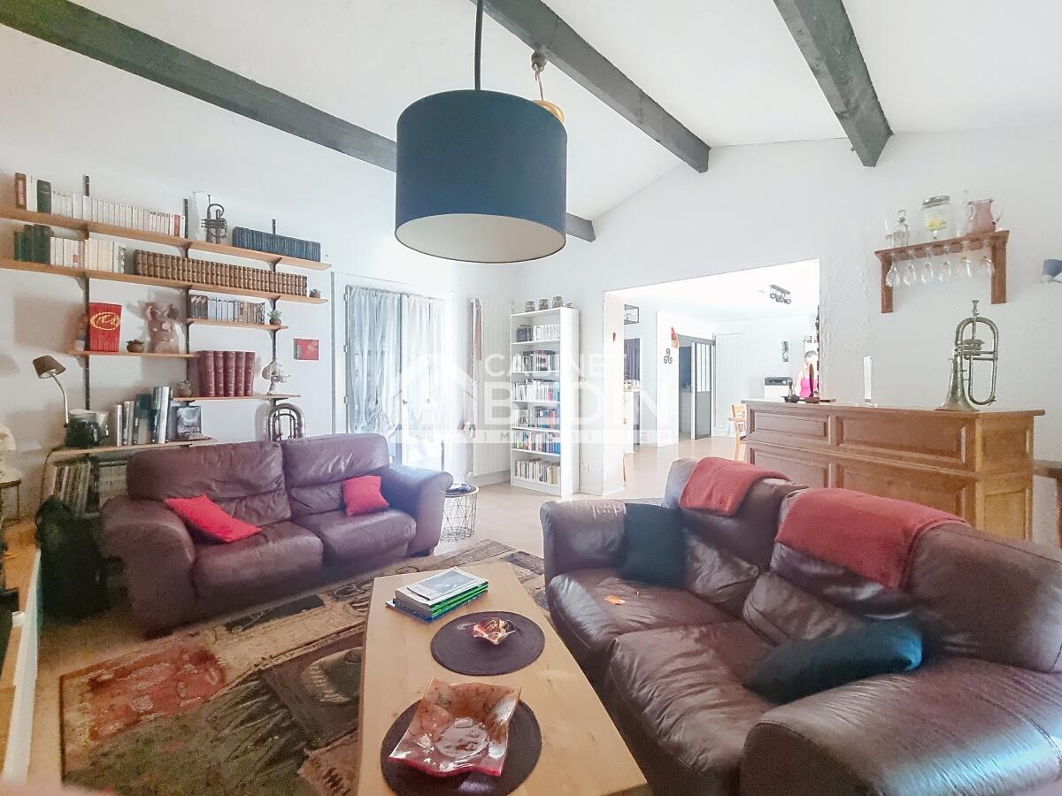 Maison de construction traditionnelle développant une surface habitable de 159 m² et comprenant en rez-de-chaussée un espace de vie déplafonné de 44 m² avec cheminée et grandes ouvertures, une cuisine aménag...