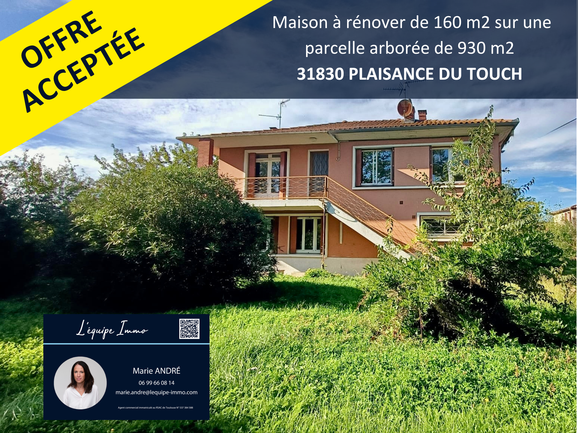 Située au centre de Plaisance du Touch, à deux pas de toutes les commodités, venez découvrir cette maison à rénover, de 160 m2 sur deux niveaux, implantée sur une parcelle arborée de 930 m2 environ.