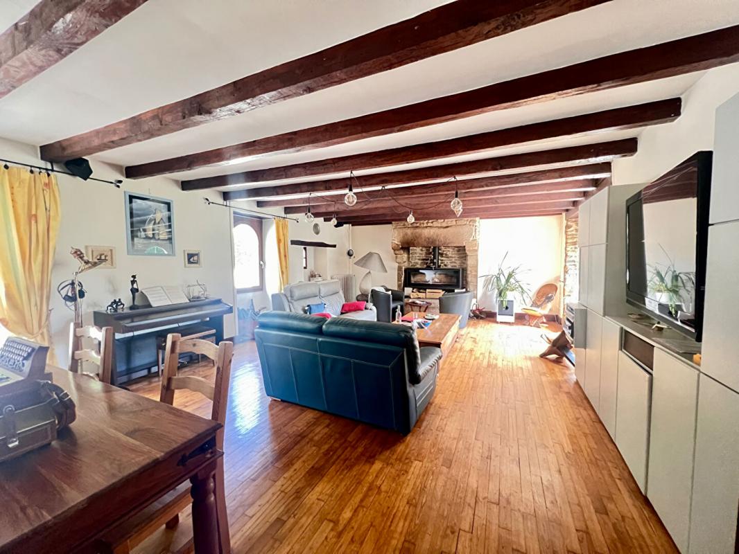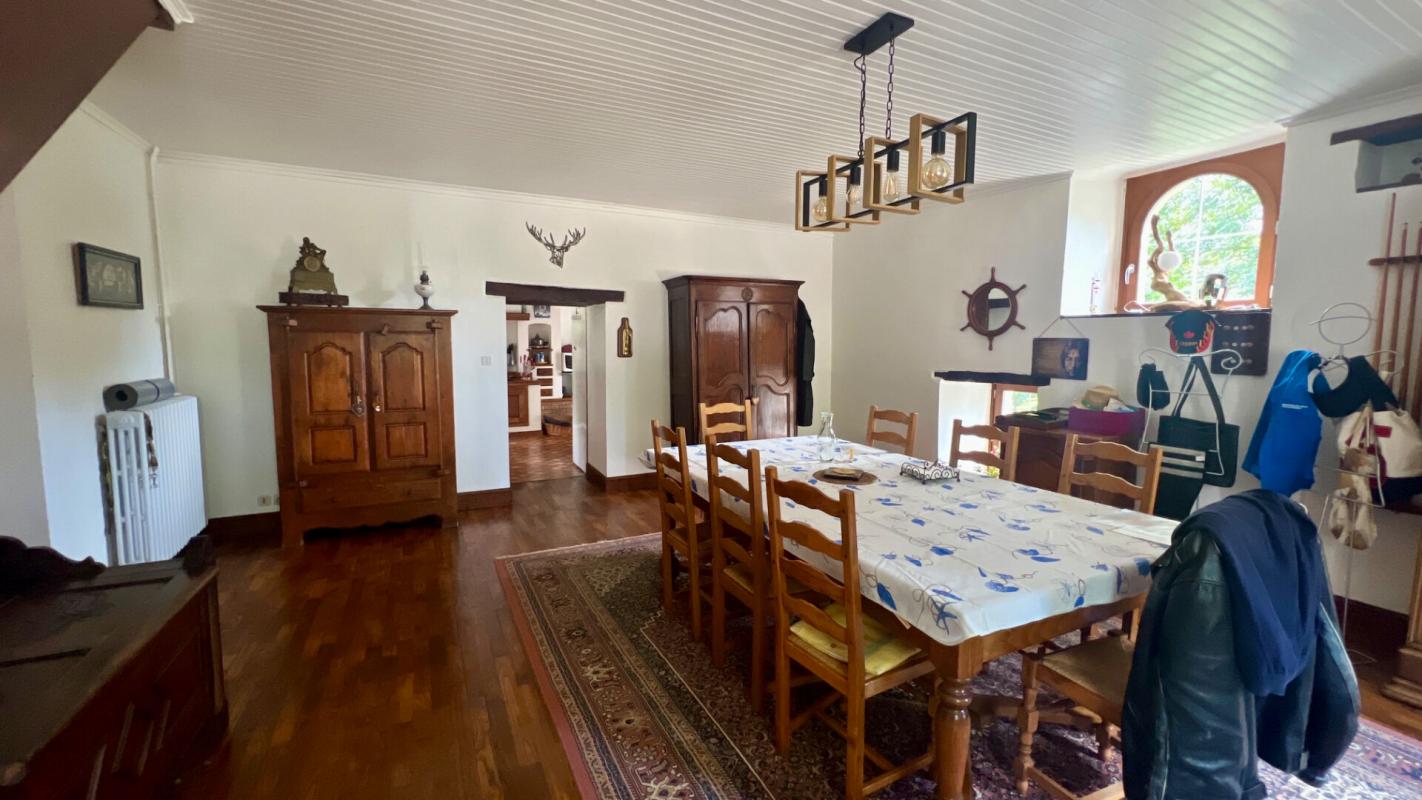 Il comprend au rez-de-chaussée une pièce de vie, 2 chambres, salle d’eau, WC, une pièce avec grande cheminée et une ancienne étable d'environ 52 m² desservant 2 caves.