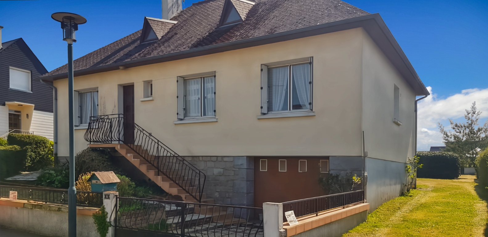Proche du centre et des commodités de Pleine-Fougères, maison de années 70, sur sous-sol total, d'une surface habitable de 88.6m², avec un potentiel d'aménagement, sur un terrain de 1073m²clos...