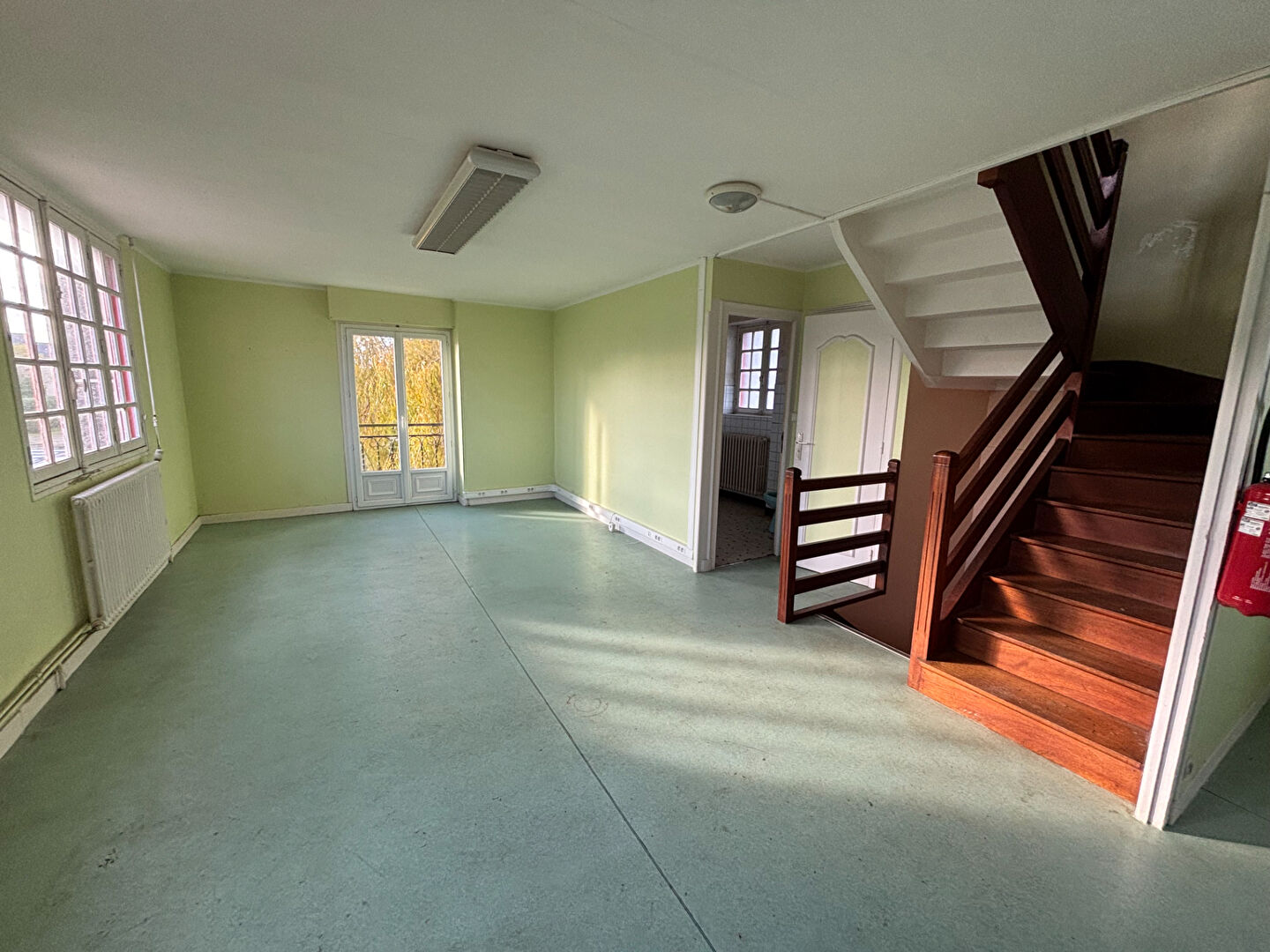 - Au rez-de-chaussée : entrée avec placard, séjour salon avec espace cuisine, une chambre, salle d'eau et WC.