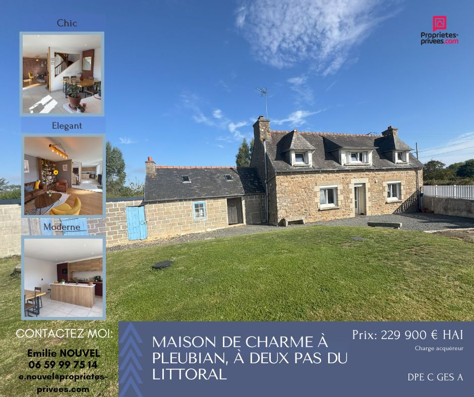 A quelques pas des côtes sauvages de Pleubian, cette maison de 80 m² vous offre un beau potentiel pour créer votre havre de paix breton. Édifiée sur une vaste parcelle de 1 550 m², elle séduit par son authenticité et sa situation privilégiée, à proximité des p...