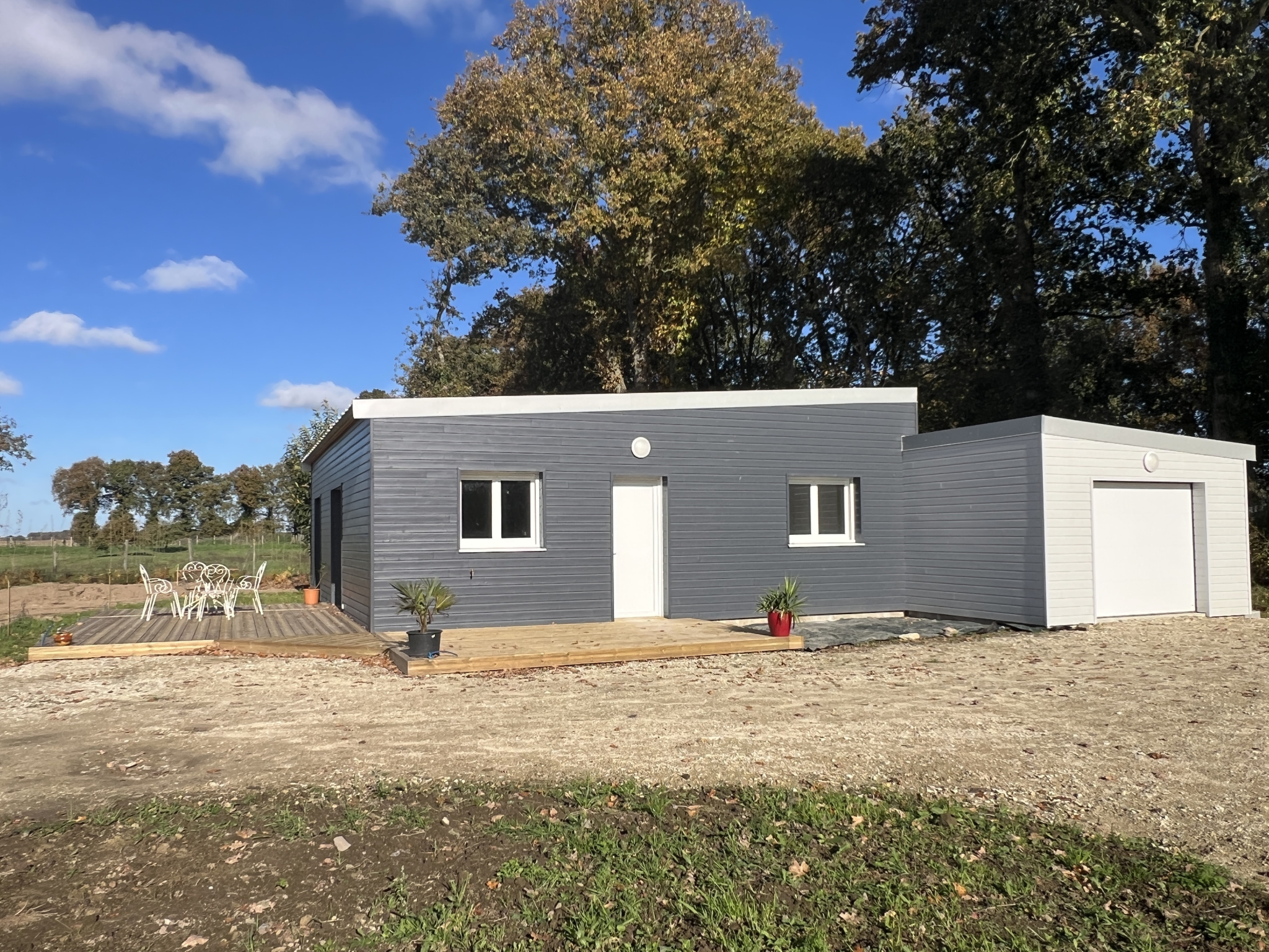 Venez découvrir cette maison neuve de plain-pied sur 80m2 habitable, elle comprend une belle pièce de vie avec coin cuisine à aménagée de 47m2, deux chambres, une salle d'eau, un grand garage avec buanderie de 28m2 avec porte électrique et une spacieuse t...