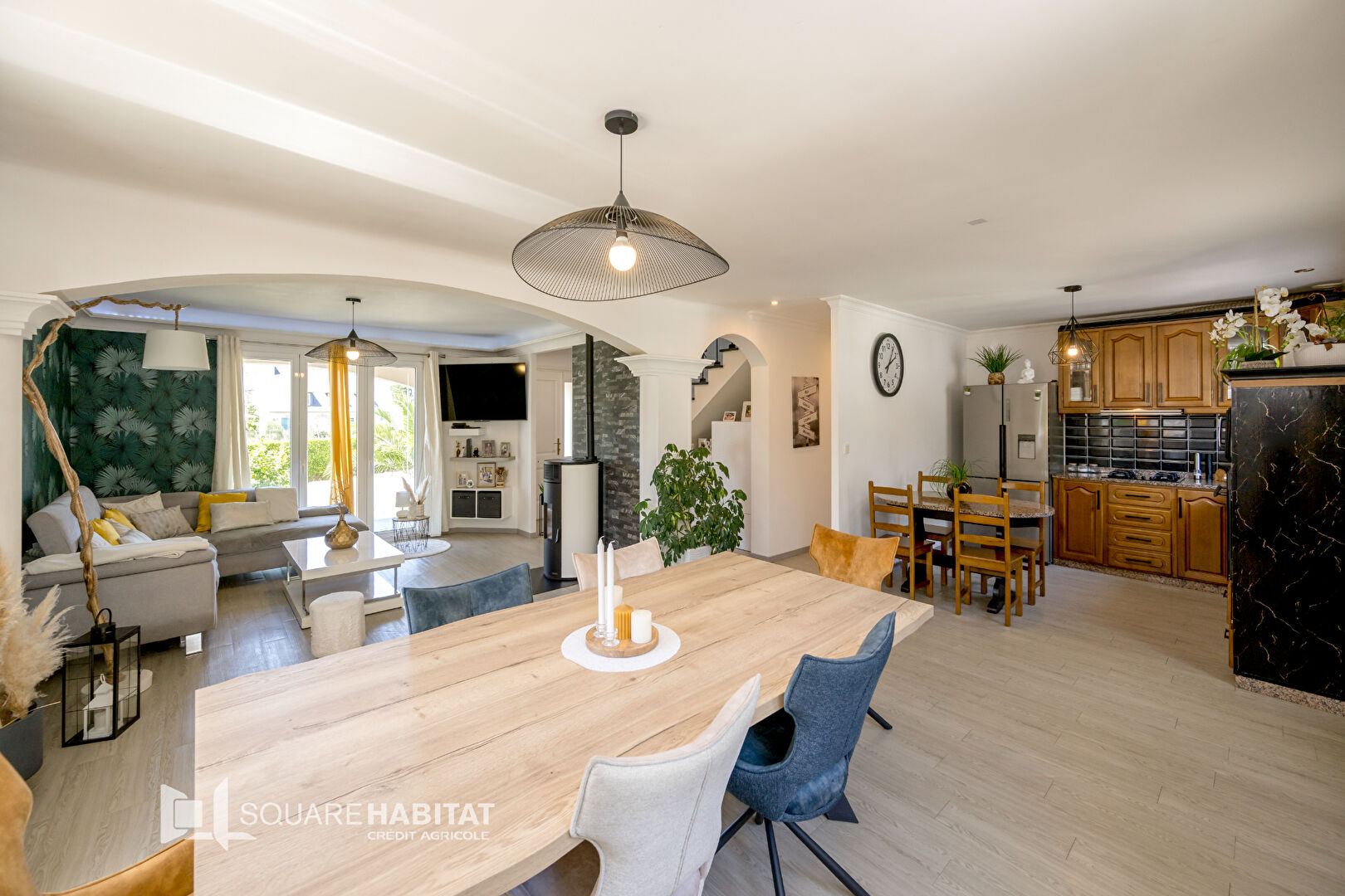 - Au rez-de-chaussée d'une entrée sur une grande pièce vie de plus de 50m² avec poêle à bois et une cuisine aménagée ouverte, une ch...