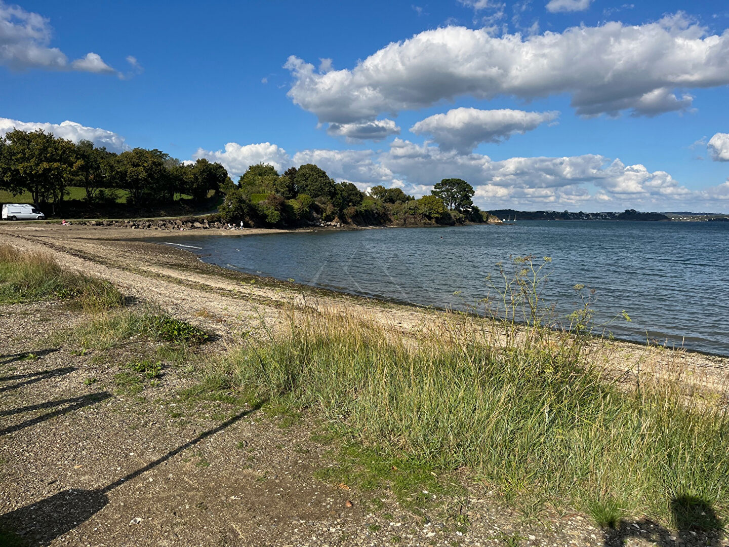A 200 mètres d'une des plus belles plages de la presqu'île de Plougastel-Daoulas, une maison de plain-pied sur 1500 m² de terrain. Elle offre un hall d'entrée avec placard ouvert sur un vaste salon séjour avec coin cuisine aménagée, un bureau, t...