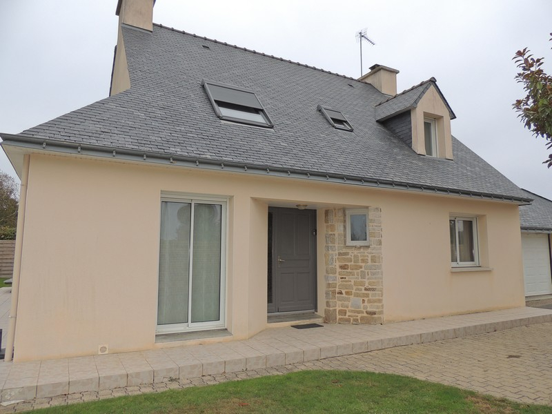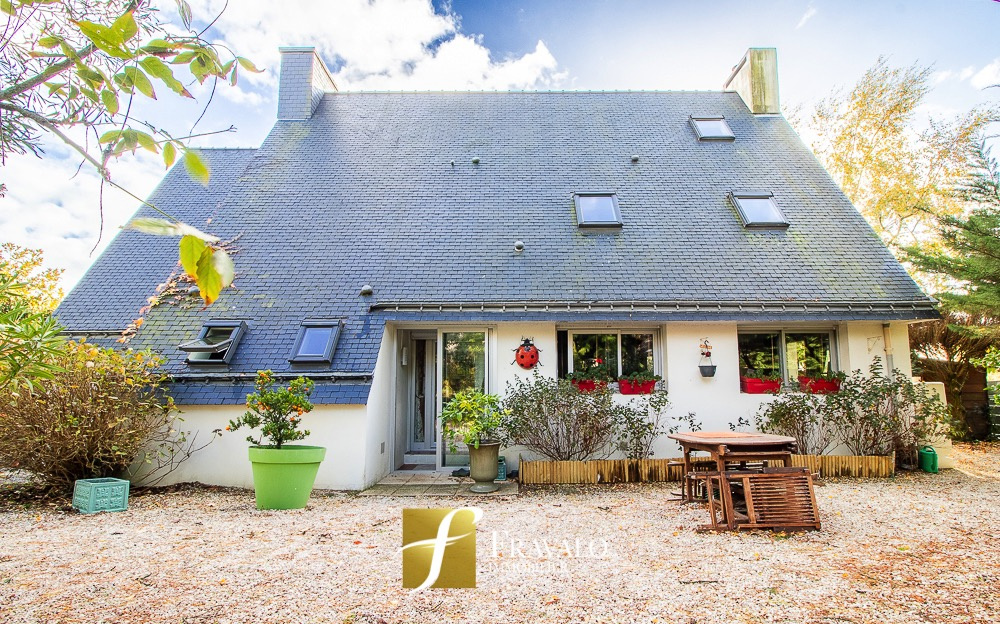 Située à proximité des sentiers côtiers et forestiers, cette jolie néo-bretonne, entièrement rénovée, offre de beaux volumes. Au rez-de-chaussée, vous trouverez une entrée, un séjour spacieux et lumineux avec un poêle, une cuisine aménagée-équipée, une chambre...