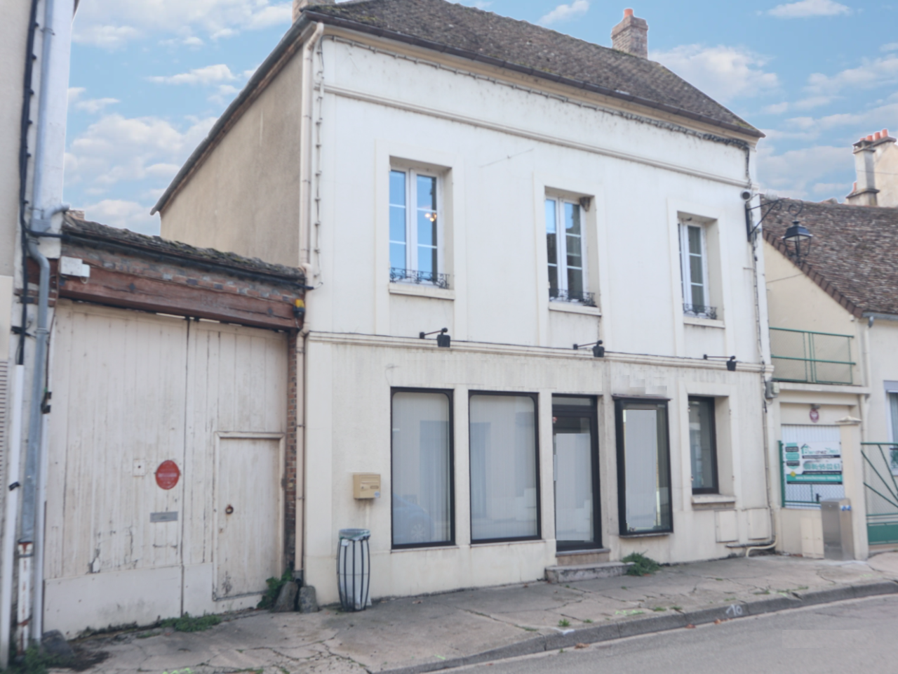 Le bâtiment principal, d'environ 143 m2, qui peut être utilisé comme boutique ou bureaux, ou être transformé en maison d'habitation, comprend :