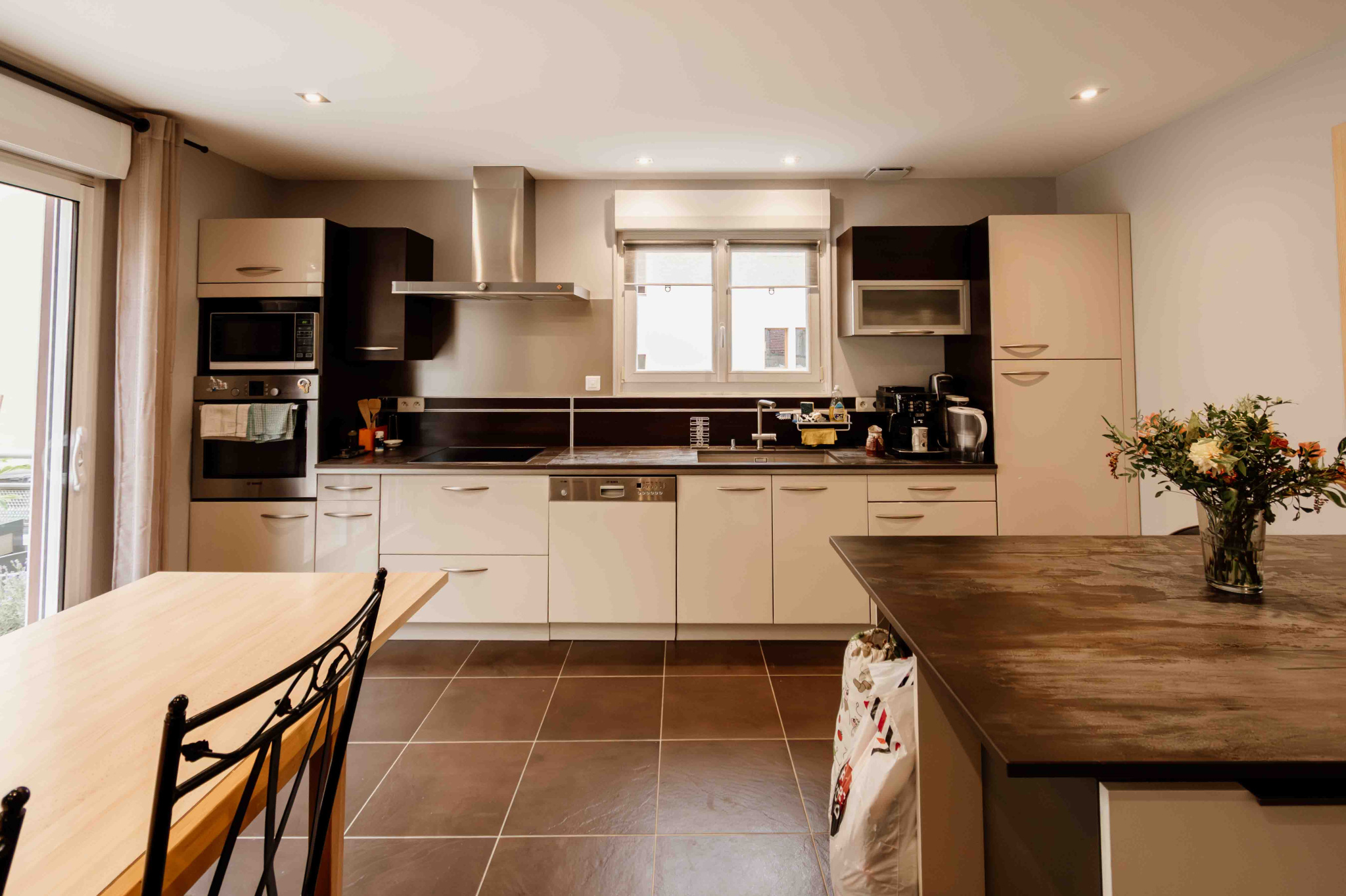 Maison de ville récente, très belles prestations, comprenant une entrée, cuisine entièrement équipée ouverte sur un sejour très vaste, le tout donnant accès à une grande terrasse. Trois chambres, un espace bureau, salle de bain, sall...