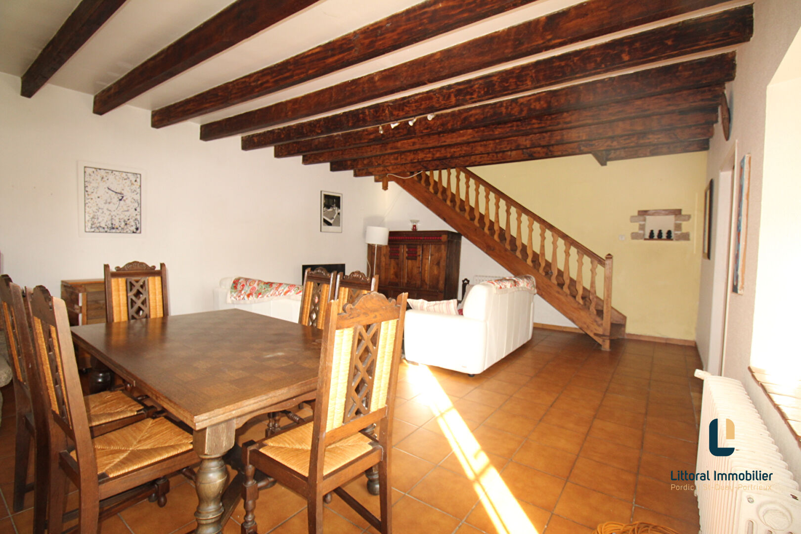 Double séjour avec deux cheminées, cuisine indépendante et grande chambre en rez de chaussée. A l'étage, deux autres chambres, salle ...