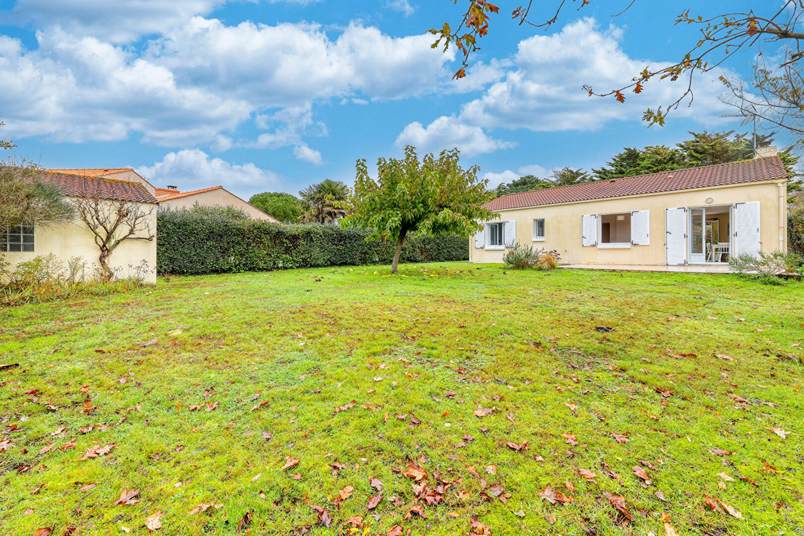 Sur les hauteurs de Pornic quartier des olivettes, Sur un terrain de 2144 m² arboré avec une partie verger, plain pied de 1991 d'environ 120 m² hab comprenant : entrée, Vaste pièce de vie de 60 m² avec cuisine récente équipée, 3 chambres dont 1 de 12.8m²...