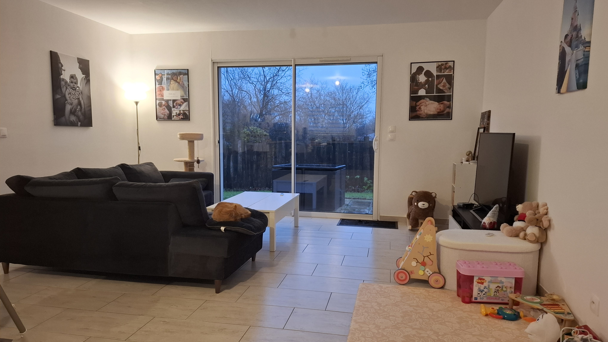 Une vaste pièces de vie lumineuse de 47m2 env comprenant une entrée salon séjour cuisine ouverte s'ouvrant sur une terrasse et un jardin ar...