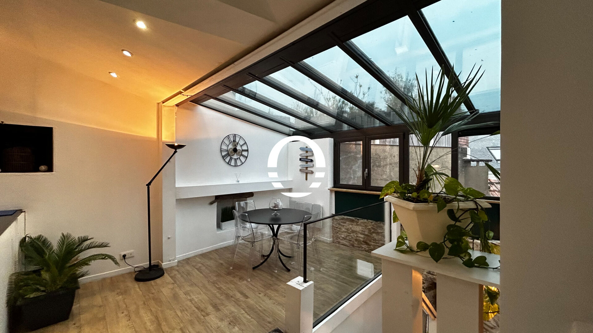 Maison de ville proche des halles comprenant Au rez de chaussée : Séjour prolongé par une cuisine lumineuse avec éléments bas gazinière, frigo top,
