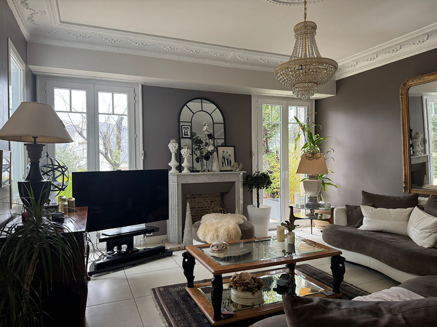 Découvrez un bel espace de vie avec cheminée pour profiter des moments chaleureux en famille ou ...