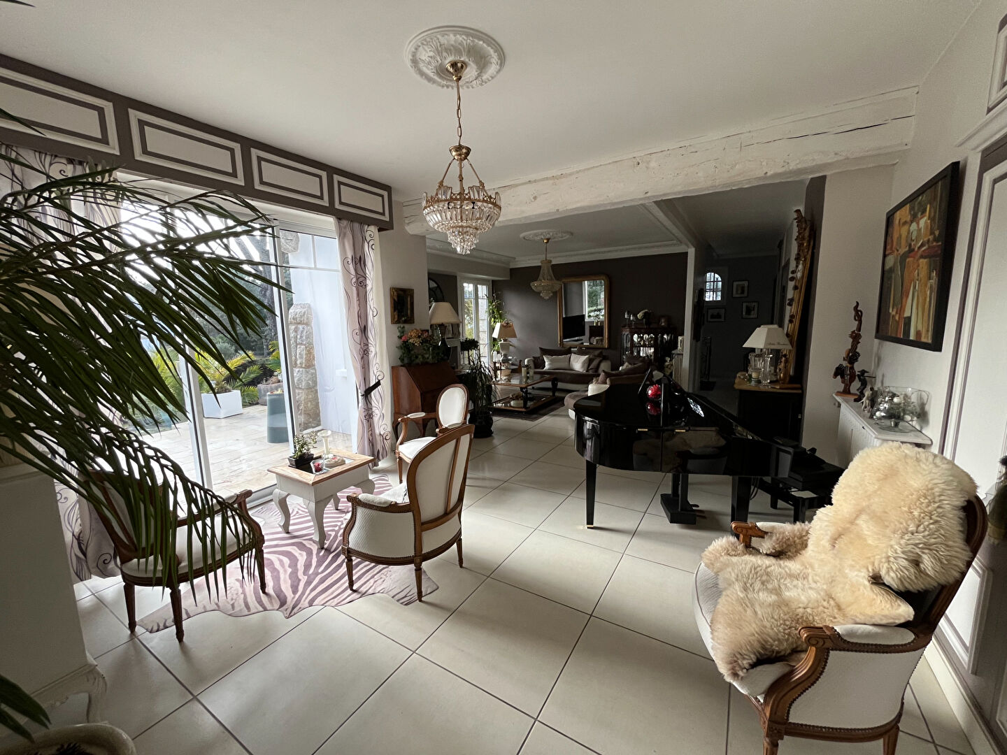 La pièce de réception aux volumes généreux s'ouvre sur une terrasse exposée plein sud, parfaitement inti...