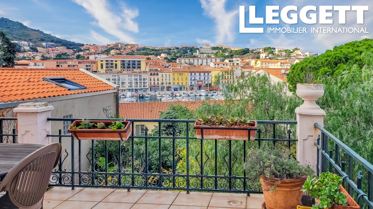 A33490AHA66 - À Port-Vendres, cette spacieuse maison de 147 m² avec 4 chambres et 2 salles de bains offre une vue imprenable sur le port. Lumineuse et atypique, elle dispose d'un grand salon ouvert sur la salle à manger et d'une cuisine équipée, idéa...