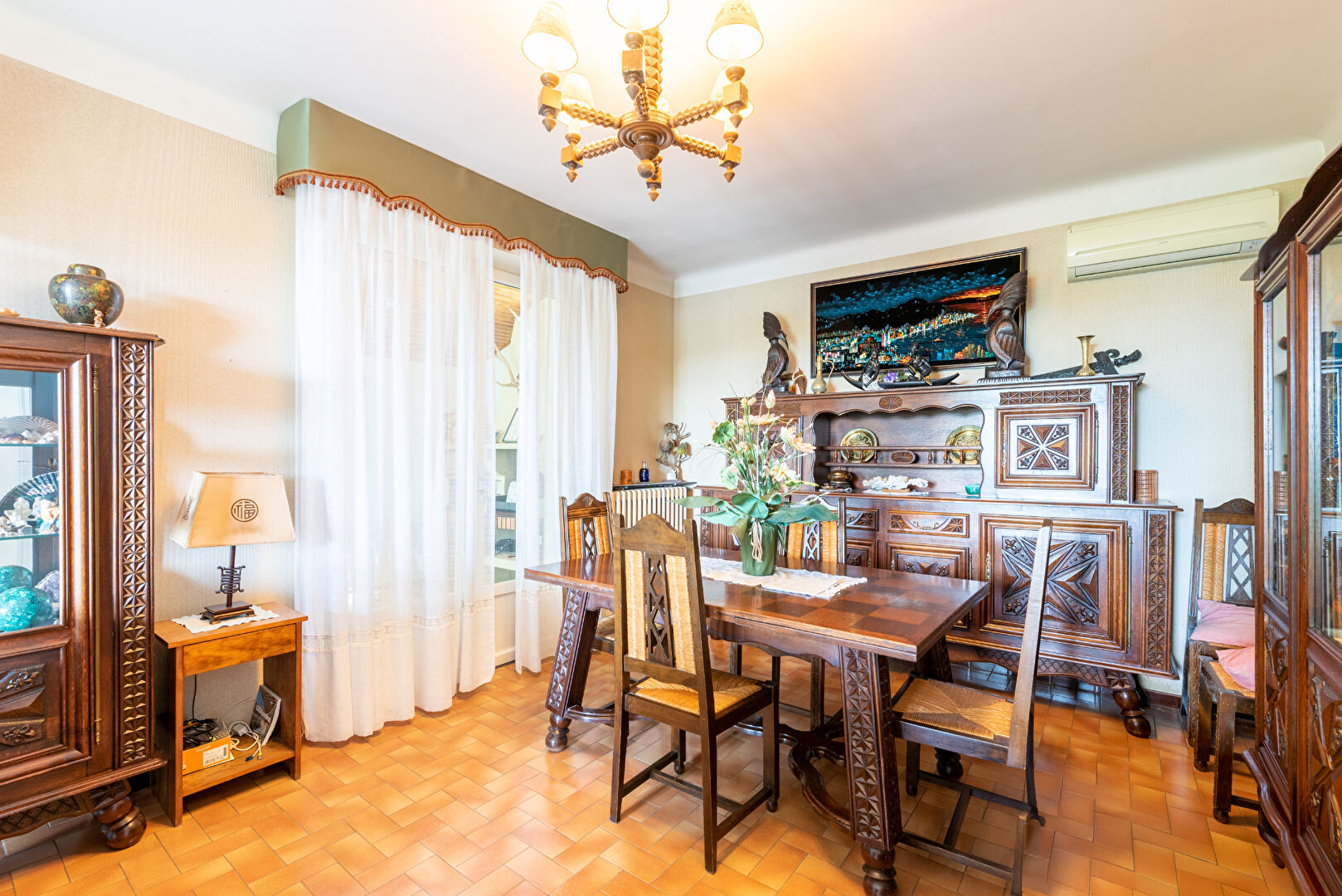 Belle maison de famille à rafraichir de l'architecte Prunetti, offrant sur 2 niveaux : entrée, salon, salle à manger, cuisine indépendante, 7 chambres, salle de bains, salle d'eau, cheminées, parquet bois, por...